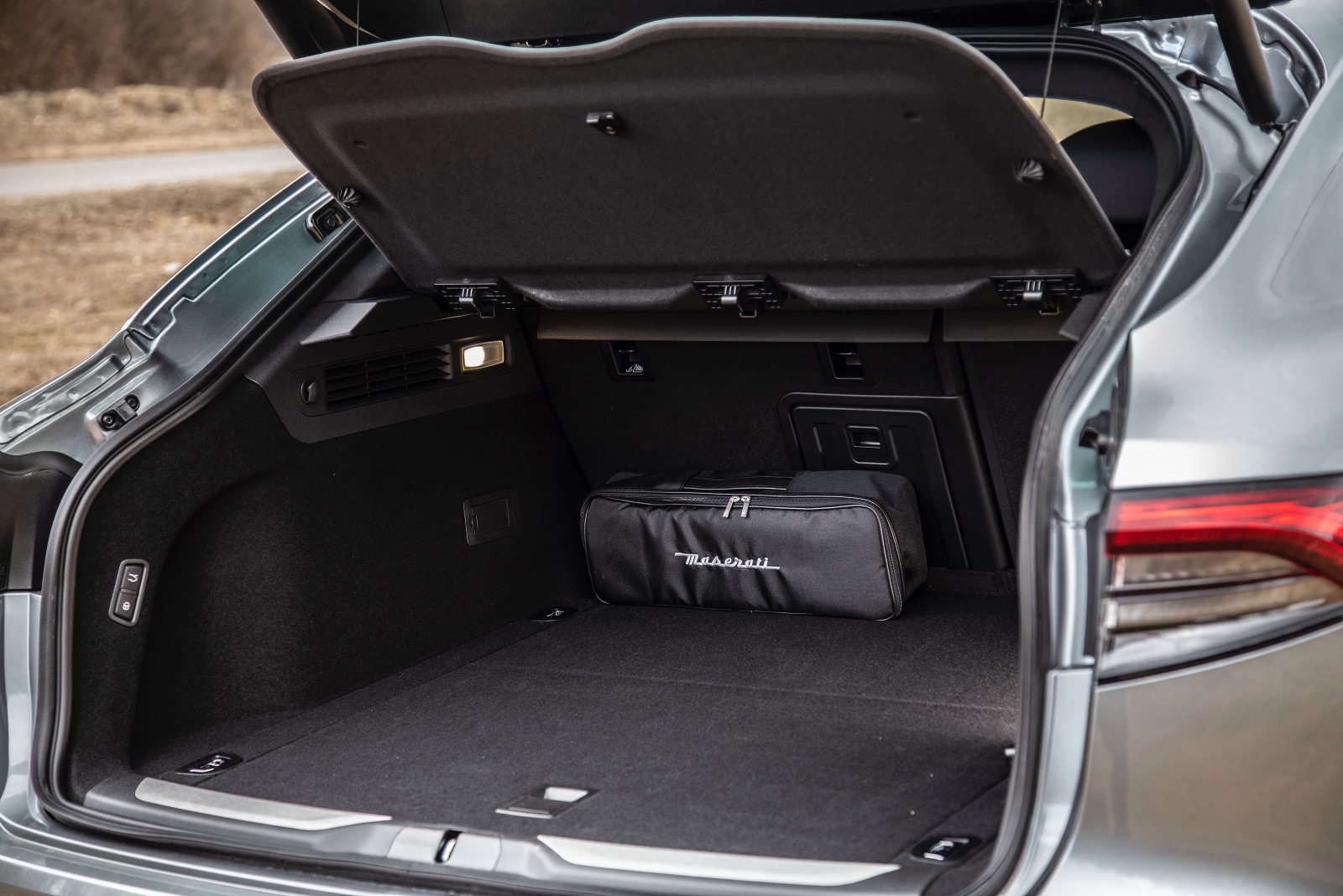 Levante e un automobil suficient de practic, portbagajul oferind un volum de încărcare de 580 de litri. Hayonul este electric, iar butonul de acționare se află în interiorul portbagajului pe partea din stânga, mai practic decât amplasarea pe rama hayonului, așa cum se practică în general. Sub podeaua portbagajului, roata de rezervă a fost înlocuită de un kit de pană, iar sub acesta se găsește bateria sistemului mild hybrid, dar și bateria standard de 12 V.