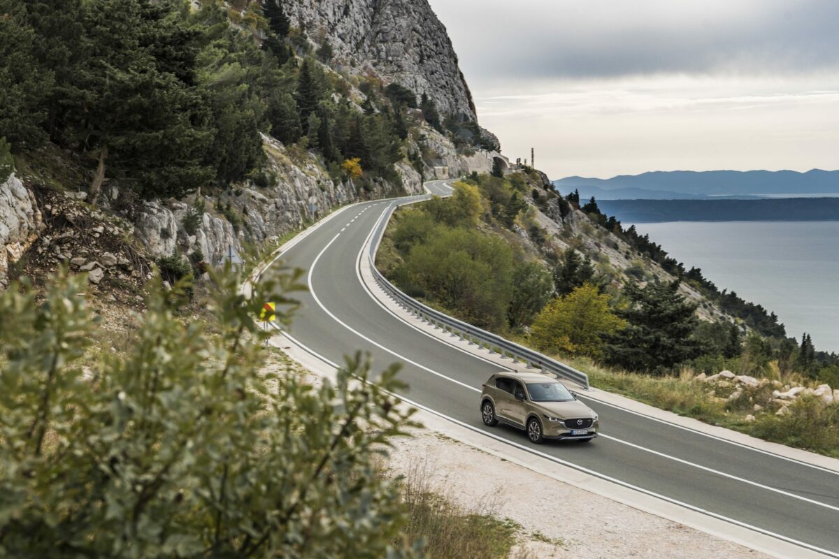 Inițial, m-a îngrijorat acest viraj spre confort, care prevestea o ușoară limitare a dinamicii pe porțiunile sinuoase. Însă după primele câteva succesiuni de curbe, m-am relaxat. Inginerii au compensat noile reglaje cu sistemul G-Vectoring Control + (GVC+), care ține mașina pe trasă mai ceva ca trenul pe șine. Surprinzător, suspensia mai moale pare că îl ”plantează” mai bine pe CX-5 model 2022 pe șoselele denivelate, roțile păstrând mai corect contactul cu asfaltul.