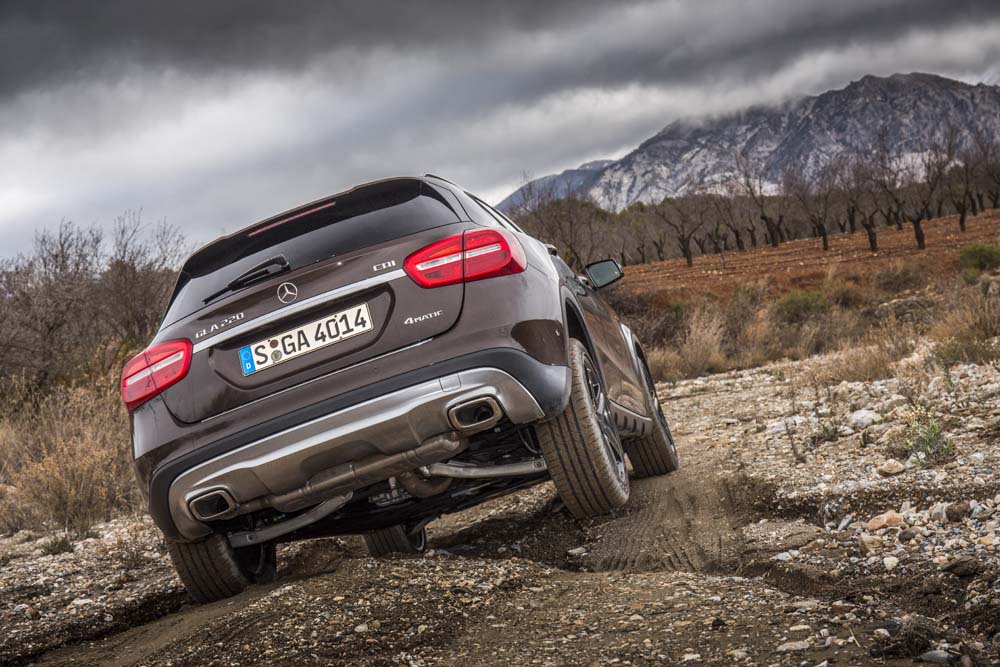 In cadrul evenimentului international destinat presei de specialitate, am avut ocazia sa conducem versiunea 250 4MATIC si 220 CDI 4MATIC. Mai trebuie precizat ca sunt oferite si trei setari diferite ale suspensiei: Sport, Confort si Off Road, care modifica garda la sol intre 155 mm si 204 mm. Toate motorizarile vin standard cu functie Start/Stop si se mai poate alege, in functie de motorizare, intre doua cutii de viteze: manuala cu 6 trepte sau automata 7G-DCT cutie cu dublu ambreiaj disponibila standard pentru GLA 250, GLA 220 CDI si toate modele echipate cu 4MATIC. Cu siguranta, cel mai ravnit propulsor este 220 CDI, acelasi 2,1 litri al marcii, cu doua turbine si 170 CP, care, in timpul testului, a consumat cu circa 2 l/100 km mai putin decat 250 benzina 4MATIC. Cilindreea mare il ajuta in zona inferioara de turatie, in timp ce sistemul bi-turbo ii pastreaza suflul si dupa ce turometrul trece de 3.500 rpm.