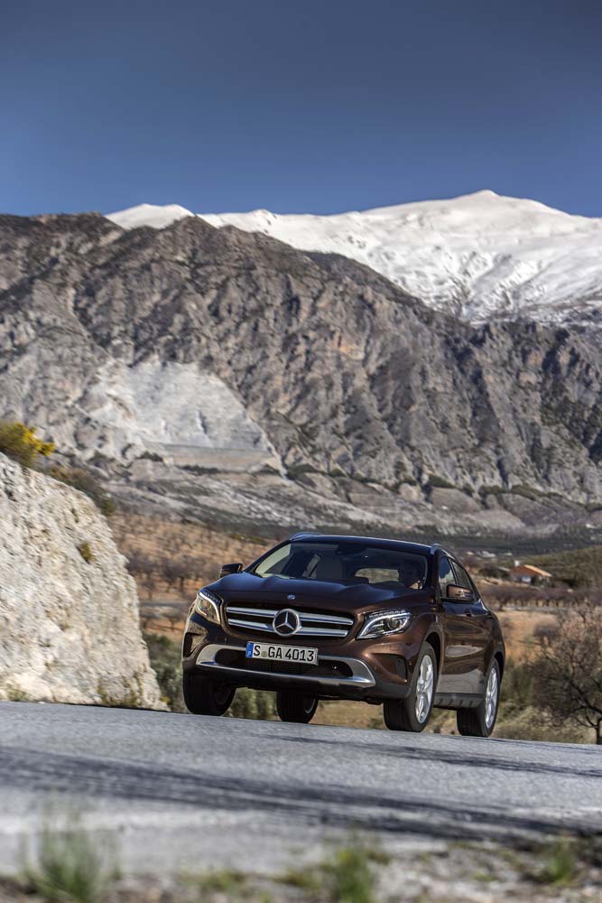Mercedes-Benz este mai serios ca niciodata cand afirma ca in 2020 va ajunge numarul 1 la nivel mondial. In Romania, anul 2013 a fost prima data, in ultimii 10 ani, cand a preluat sefia clasamentului premium, iar noile sale arme, Clasa A, Clasa B si CLA, au la baza aceeasi platforma. Inceputul lui 2014 aduce a patra declinare a faimoasei platforme de clasa compacta – noul GLA. Acesta este un SUV compact premium care ofera mai mult spatiu decat Clasa A si este o idee mai manevrabil in comparatie cu GLK, fara insa a sacrifica aptitudinile de trecere peste obstacolele intalnite in traseele de zi cu zi. Formele indulcite arata clar orientarea catre noul limbaj de design al marcii, pe care l-a adoptat si caroseria lui GLK odata cu faceliftul. Caroseria masoara 4.417 mm lungime, fata de 4.292 mm cat are Clasa A sau 4.536 mm cat este lungimea unui GLK.