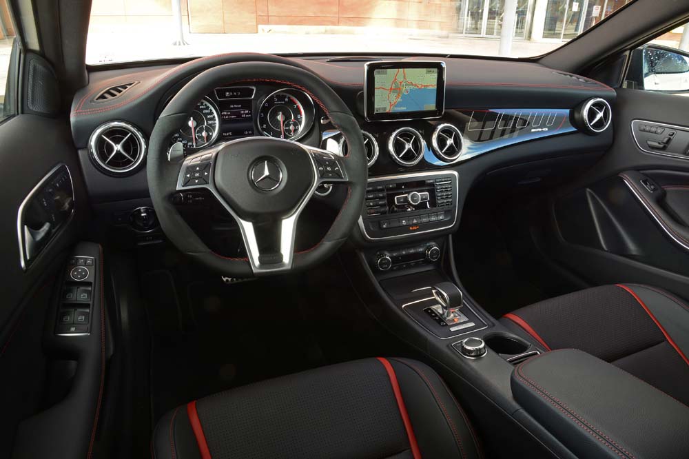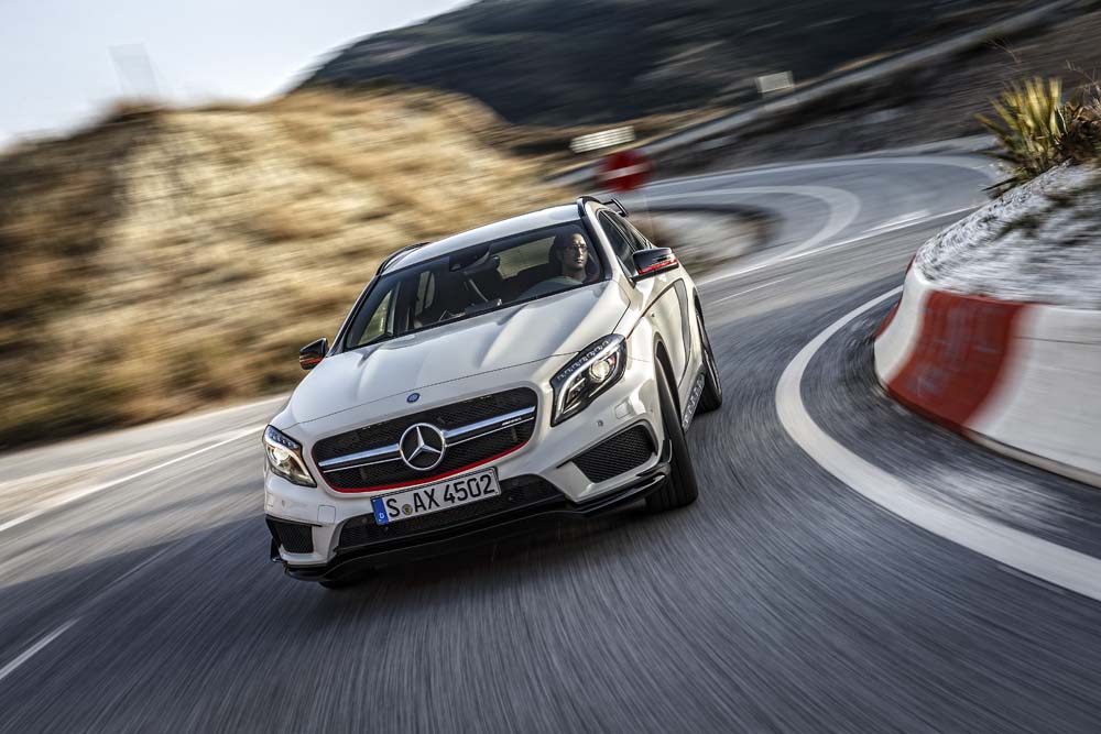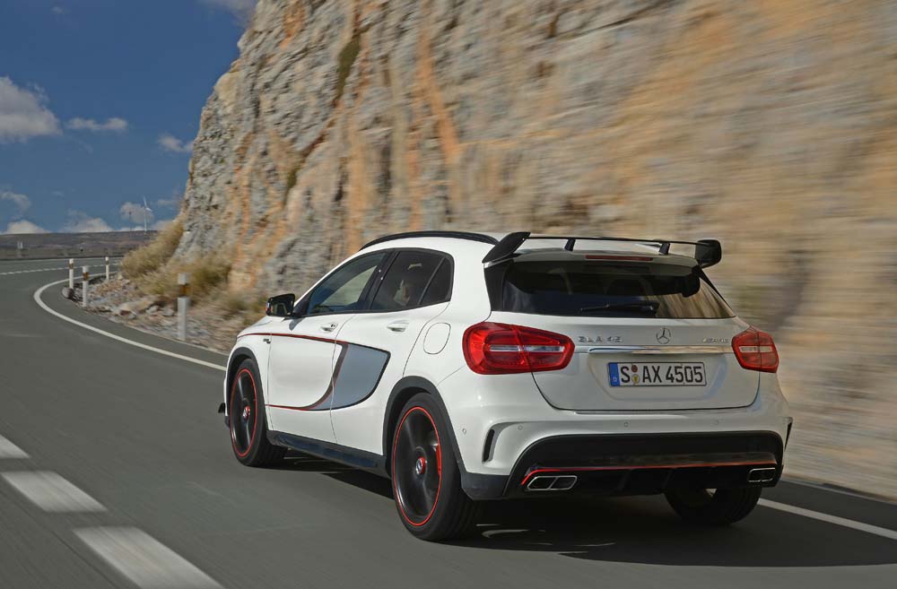 Da, pentru a atinge 0-100 km/h sunt necesare doar 4,8 secunde,acompaniate de un zgomot de rally la schimbarea fiecărei trepte în cazul în care optezi pentru evacurarea sport AMG disponibilă pentru numai câteva sute de euro în plus. Este maşina care se agaţă cu o încâpăţanare incredibilă de fiecare centimetru de asfalt şi care, spre deosebire de alte modele concurente, este foarte docilă la viteze medii. Îţi oferă însă atât de multă încredere încât vitezele de 3 cifre care încep cu litera 2 pot fi fatale pentru ce inovici. Se conduce cu o supleţe incredibilă şi vine la pachet cu o suspensie care iartă micile stângăcii sau cele mai multe dintre denivelări. Alege modul Sport atât din butonul aflat pe consolă cât şi cel de la baza cutiei de viteze, şi GLA 45 AMG devine o bombă pe roţi care pune în dificultate, pe viraje, modele a căror valoare este aproape dublă ca şi preţ.