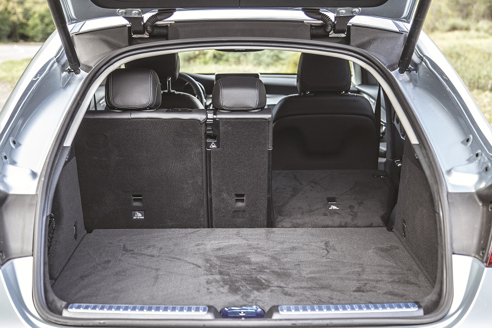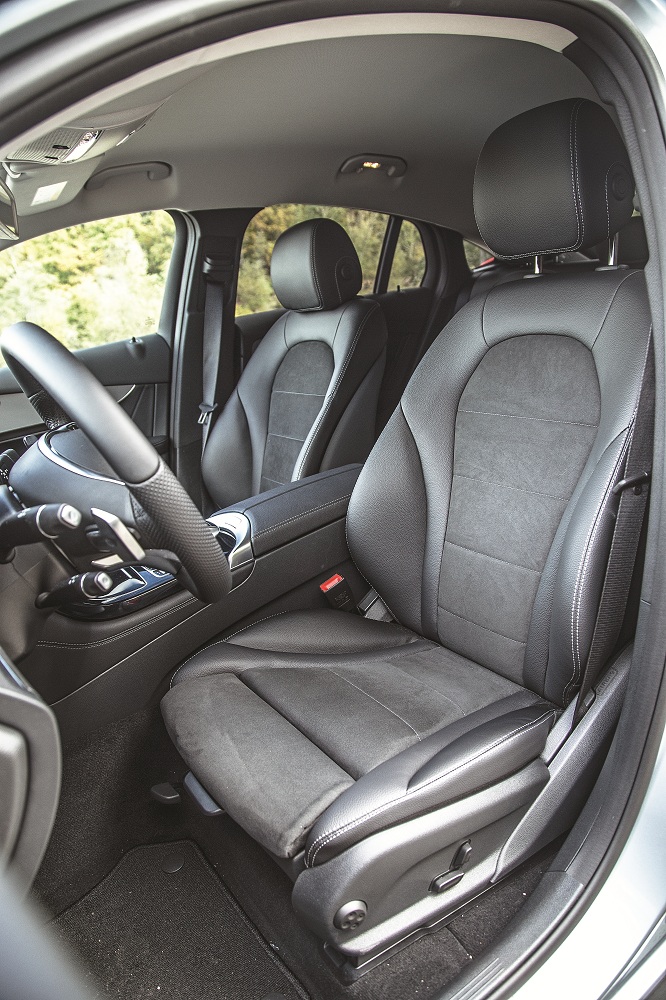 Aceștia beneficiază de o înălțime interioară respectabilă în spate, de 97 cm, mai mare ca în multe limuzine de clasă medie și mare. De asemenea, ca și la GLC, șezutul este poziționat optim și poziția de ședere în spate este confortabilă. Deci, din acest punct de vedere, cei care aleg GLC Coupe nu trebuie să facă niciun compromis față de GLC. Singurul compromis de spațiu este la volumul portbagajului. GLC Coupe beneficiază în standard de aceeași banchetă fracționabilă 40/20/40% și se obține aceeași suprafață perfect plană prin rabatere. Doar volumul portbagajului este puțin mai mic, fiind cuprins între 500 și 1.400 litri față de 550 și 1.600 litri la GLC, iar marginea de încărcare este puțin mai înaltă. Dar pe de altă parte, câte coupe-uri oferă un volum util de 500 litri?