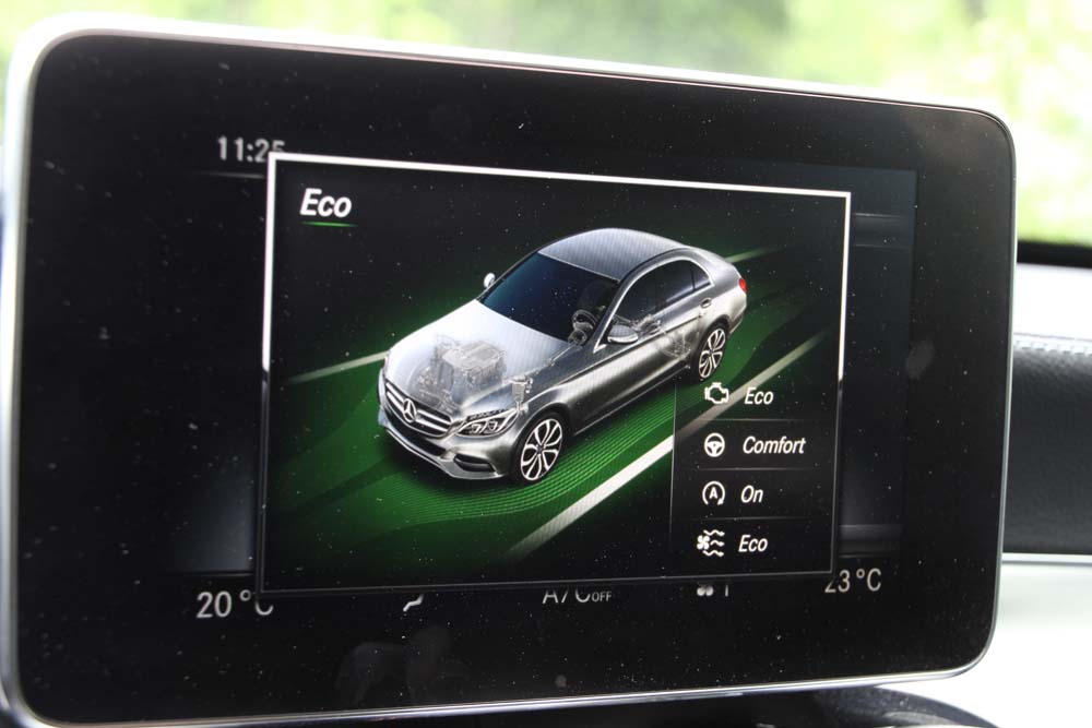 Personal, as inlocui doar acel plastic negru lucios de pe consola, predispus la zgarieturi, cu aluminiu sau imitatie de lemn. Tehnologia se regaseste, in mare parte, in zona central. Mai exact, pentru 3.000 de euro cat costa noul COMAND Online ai acces la un display mai mult decat generos, un sistem de navigatie a carui harta este 3D, precum si functiile sistemului Agility Select intr-o grafica interactiva. Toate aceste functii sunt la un click distanta, click care poate fi operat fie cu ajutorul butonului rotativ, fie cu touchpad-ul care il acopera. Practic, avem o dubla comanda, usor de folosit, dar care te poate speria pana te obisnuiesti cu modurile de lucru.