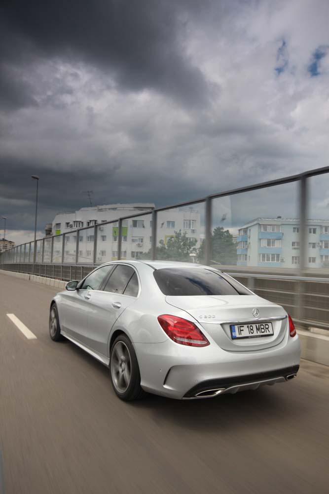 Cu un mod interesant de a livra puterea si gratie transmisiei automate imbunatatite, C200 te rasplateste cu reprize interesante si, poate cel mai important, directia si suspensia se pliaza perfect modului in care doresti sa-l conduci. Suspensia AMG filtreaza decent denivelarile, insa isi intra in mana in primul viraj, unde descoperi cea mai incisiva generatie de C din istorie. Da, te implica in condus mai mult decat o face orice alt competitor, iar la nevoie poate survola soselele prezidential. Toate acestea, in conditiile unui consum real de carburant pentru care ai face bine sa uiti ca exista un diesel cu putere echivalenta.