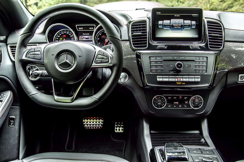 Deşi este un model complet nou, peste layout-ul interior se vede că a trecut o brumă de timp (este preluat de la fostul ML, actualul GLE). Am apreciat ecranul sistemului multimedia, o revoluţie în materie de grafică şi rezoluţie comparativ cu ceea ce livra până de curând Mercedes-Benz. Totuşi, chiar şi el este integrat uşor forţat în planşa de bord. Foarte frumos şi de efect ornamentul din fibră de carbon, excelent ales pentru un model care poartă badge-ul AMG. Comenzile sunt intuitive, ergonomice. Mai puţin inspirat mi se pare selectorul modurilor de funcţionare ale automobilului, plasat lângă controller-ul sistemului Comand.