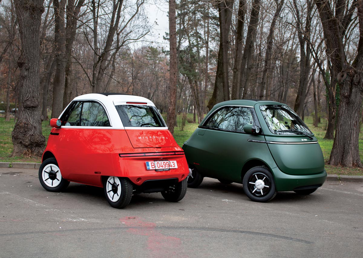 Un brotac și o broscuță își dau umeri, căutând celebritatea în trafic. Culmea, nici n-au nevoie să se lupte, pentru că sunt inundați de un val de simpatie atât de mare, încât nu pot să-i țină piept nici împreună. Ce este, de fapt, simpaticul Microlino și care e scopul lui pe Pământ? Foto: Bogdan Grigorescu