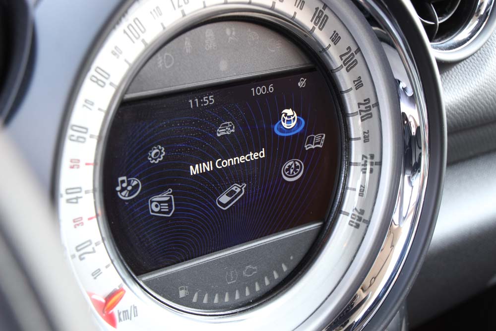 În interior se păstrează aceeaşi ambianţă întâlnită în Mini Cooper, uşor supradimensionată. Calitatea finisajelor este una bună şi comutatoarele prezente pe bord te duc cu gândul la aviaţie, făcând plăcere pasionaţilor. Dacă lizibilitatea poate fi cel puţin discutabilă, nu putem spune acelaşi lucru despre conectivitate şi tehnologie, Mini Connected fiind similar cu noile generaţii de i-drive de la BMW, lucru benefic pentru pasionaţii de gadget-uri. Prin acest sistem se poate utilize conexiunea telefonului la internet prin maşină pentru a verifica contul de facebook, starea vremii etc. Fiind aplicaţii de care mulţi dintre noi au devenit dependenţi putem spune că este o dotare aproape la fel de important precum sistemul “maini libere” al telefonului. Aşteptăm totuşi pentru generaţiile viitoare o conectivitate mai bună şi pentru cei ce cumpără alte telefoane în afară de Apple. Principalul avantaj al lui Mini Countryman este că păstrează aerul Mini cu un interior mai spaţios. Postul de conducere este unul confortabil, scaunele sunt moi şi există suficient spaţiu pentru genunchi. Spaţiul pe banchetă este şi el bun, iar portbagajul, cu 350 de litri ne face să ne gândim şi la escapade de weekend la volanul lui Countryman.