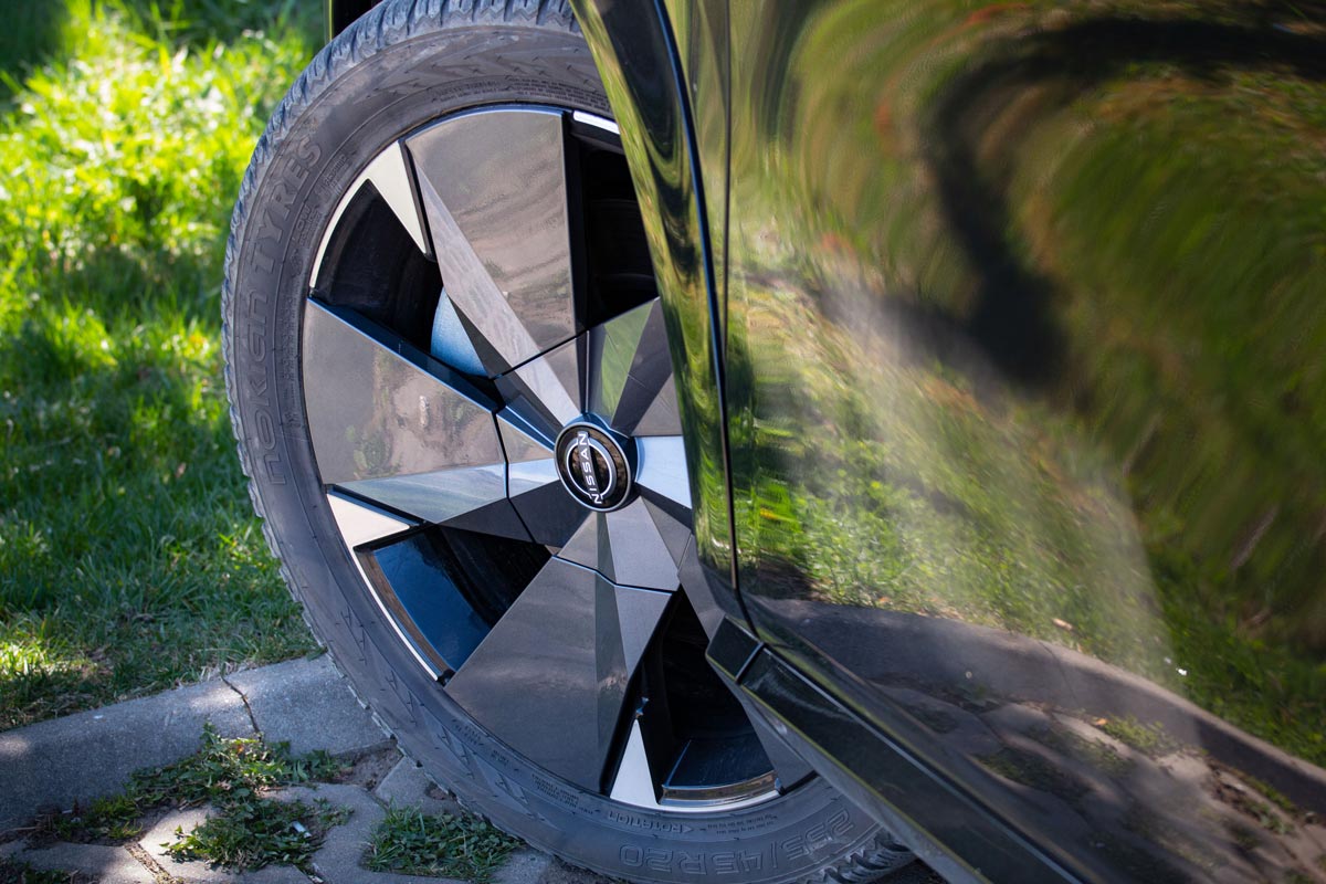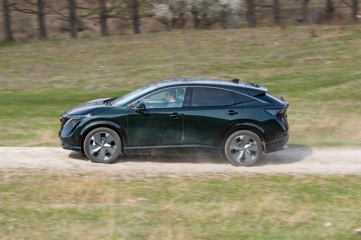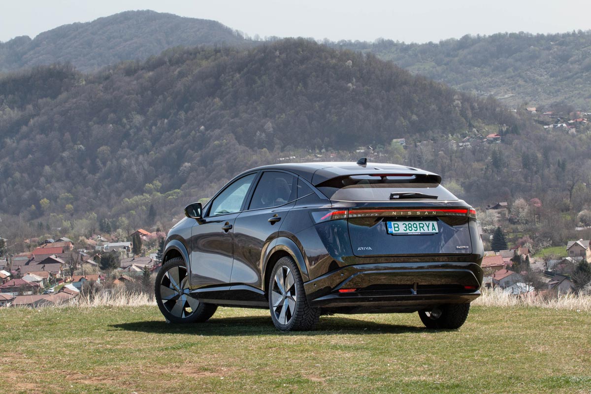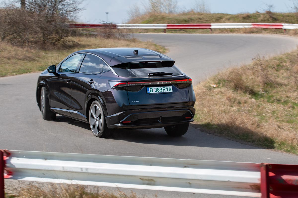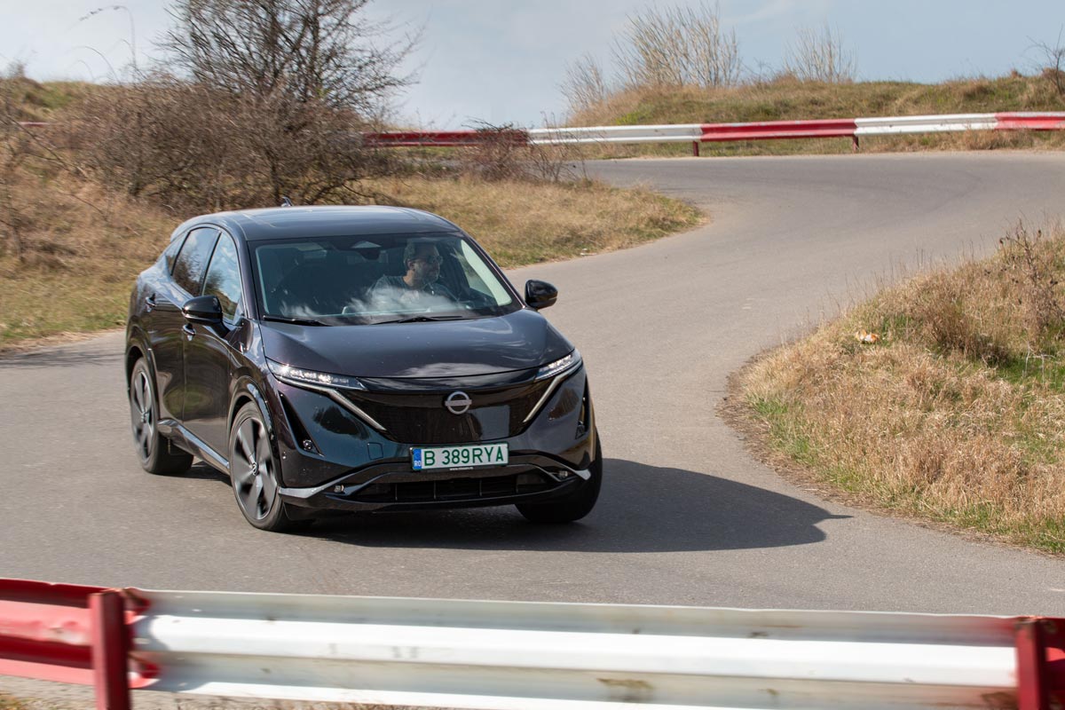 Sigur, inginerii s-au pregătit temeinic pentru infuzia de putere și au schimbat sesizabil setarea suspensiei, pentru a stăpâni mai bine ruliul și tangajul. Astfel, în oraș a dispărut dulceața cu care Ariya trece peste liniile de tramvai, aceasta fiind înlocuită de o oarecare fermitate, dată inclusiv de jantele din aliaj de 20 de inchi (19 la celelalte versiuni). La orele de vârf, consumul în București a fost de 25 kWh/100 km, echivalentul unei autonomii reale de 348 km. În weekend, a scăzut la 17, deci poți parcurge peste 500 km cu un plin de baterie.