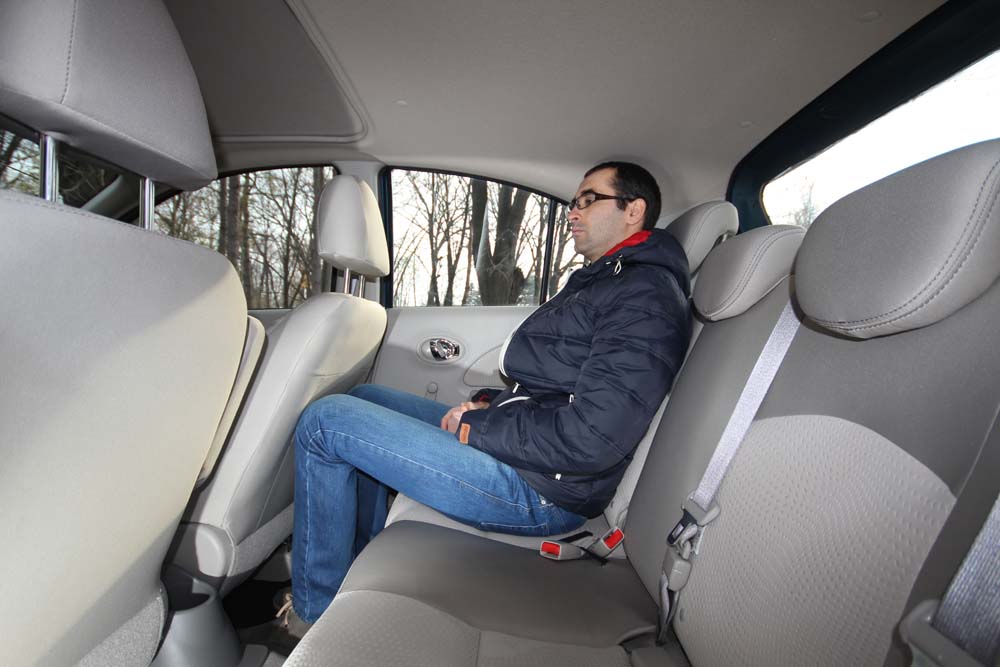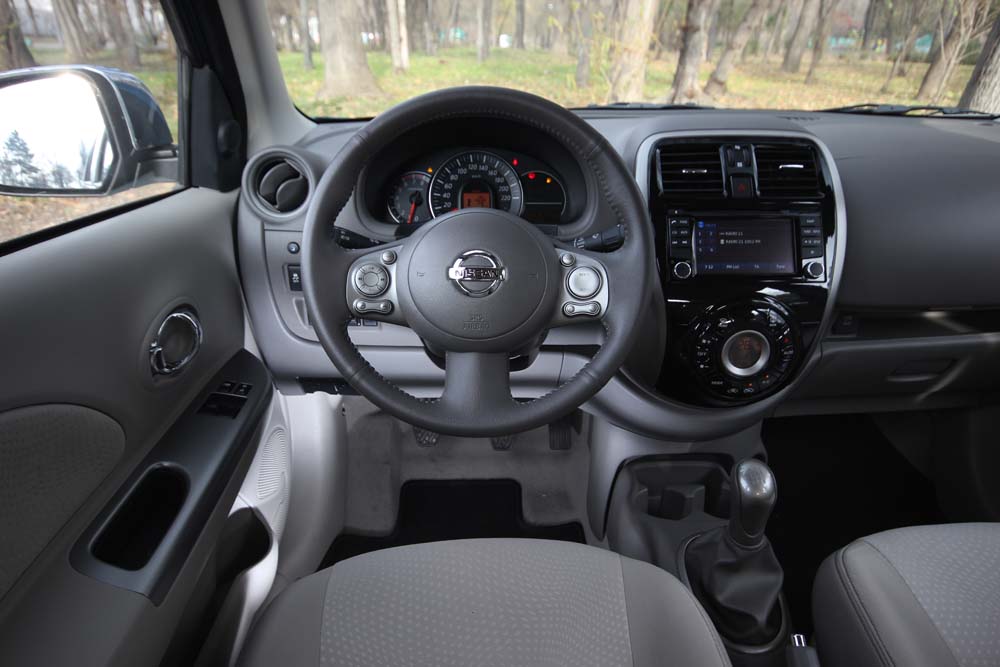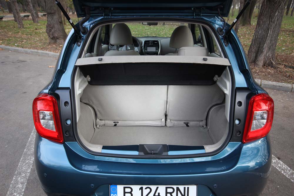 In interior valul schimbarilor continua cu o noua consola centrala plus o multitudine de retusuri aplicate materialelor toate cu scopul de sugera o schimbare de atitudine din partea lui Micra. Din pacate pentru micuta japoneza, noua consola centrala, ce promoveaza un nivel de finisari ce imi aduce aminte de mai sofisticatul Note, se afla intr-un constrast evident cu modul in care a fost croit restul interiorului. Materiale plastice au trecut printr-un filtru economic evident, iar finisarile iti amintesc ca masina asta este asamblata in India si nu in europa ca restul gamei producatorului nipon. Lucrurile se imbunatatesc odata ce te muti pe bancheta, acolo unde doi adulti au spatiu suficient picioare/cap, un lucru pe care recunosc ca nu as pariat in conditiile in care Nissan a plasat masina asta undeva intre clasa mini si cea mica. Aceasta pozitionare la granita dintre doua clase isi arata avantajul si in materie de manevrabilitate urbana, situatie ce va fi, ca si exteriorul, pe gustul clientelei feminie. Interesanta este ca Nissan a reusit sa faca din aceasta masina un adevarat atlet urban fara a recurge la o directie cu acelasi feedback ca ecranul unui telefon mobil, iar asta este o lauda din ce in ce mai rara intr-o clasa in care multi au ridicat supra-asistare directiei la rang de arta.
