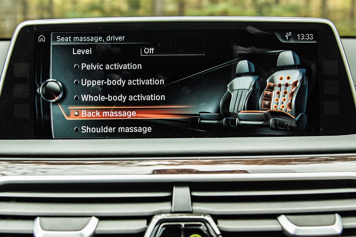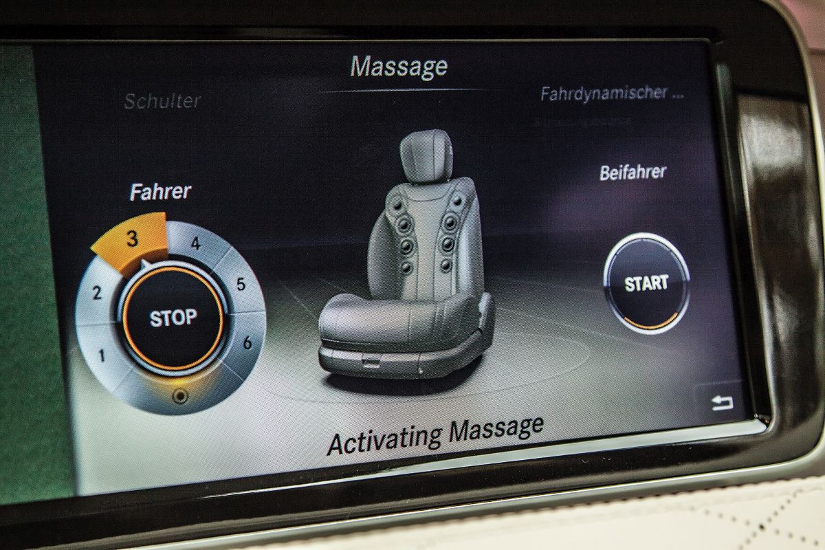 O rivalitate strânsă este și în privința funcțiilor de masaj, BMW oferind acum masaj pentru diferitele părți ale corpului în timp ce Mercedes oferă diferite programe. BMW a mers chiar mai departe cu Vitality Programme, care oferă programe de training active cu instrucțiuni pe displayurile de 10 inch ale sistemului de entertainment din spate. Ambele modele oferă un sistem de entertainment în spate, însă BMW vine în plus cu o tabletă multifuncțională Samsung care înglobează sistem iDrive pentru spate plus comanda pentru scaune. La versiunile lungi, spațiul în spate este extrem de generos în ambele cazuri cu un mic avantaj de 1 cm pentru BMW la distanța confort (Seria 7 are și un ampatament mai mare cu 45 mm). Per total însă, complet subiectiv, în Clasa S unghiul dintre spătar și șezut este mai optim în poziție normală și se stă o idee mai confortabil, scaunele fiind puțin mai moi.