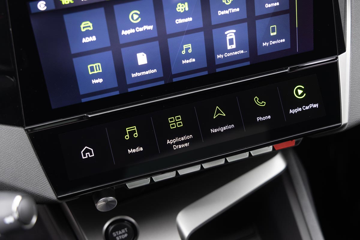 Adică fără să unească farurile cu o linie luminoasă, ci cu aceste elemente oblice excepțional de rafinat integrate în design. În sfârșit, leul din mijlocul măștii este iluminat, desăvârșind o imagine care îi va bântui din oglinzile retrovizoare pe șoferii din față. Dar există o șmecherie, pentru a le primi este necesar să optezi pentru una dintre cele două echipări de vârf, GT și GT Exclusive. Firește, și elementele oblice, și emblema, sunt prezente și pe celelalte versiuni, dar nu sunt iluminate.