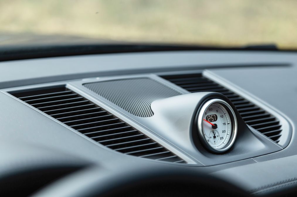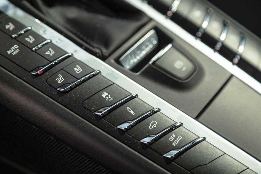 Acesta este un buton rotativ fabricat din metal și amplasat discret în partea din dreapta jos a volanului. Cu ajutorul lui putem schimba instant caracterul modelului Macan Turbo.