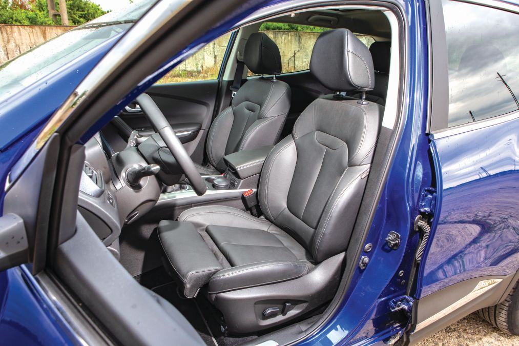 Există acum climatizare și două prize USB în spate, iar la echiparea Intens de test scaunele față cu susținere foarte bună au primit reglare manuală a lungimii șezutului și reglaj electric pentru scaunul șoferului, tapițerie mixtă textil/piele, scaun pasager față cu spătar rabatabil și podea dublă la portbagaj care permite crearea unei suprafețe plane la rabatarea banchetei. De asemenea, Intens vine cu sistem audio BOSE și sistem multimedia R-Link2.