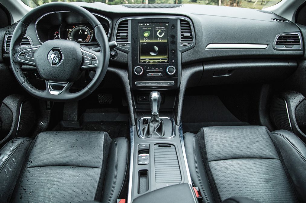 Renault abordează o cu totul altă filosofie, eliberând consola centrală de majoritatea comenzilor fizice, pe care le-a integrat în meniul sistemului multimedia R-Link 2. Partea bună este simplificarea aspectului interior, care acum pare elegant și high-tech. Partea mai puțin bună este pierderea parțială a ergonomiei: deși are un meniu bine structurat și un ecran generos, de 8,7 inch, sistemul necesită atenția șoferului, care trebuie să treacă adeseori prin două ecrane pentru a activa o comandă. Nu este o problemă a sistemului de la Renault, ci mai degrabă a tuturor sistemelor multimedia care înlocuiesc butoanele fizice. În plus, la R-Link 2, butoanele virtuale pentru reglarea volumului instalației de sunet sunt mici și transformă satelitul de comandă din spatele volanului într-o necesitate. Francezii recuperează însă spectaculos, grație display-ului head-up care răsare din bord și proiectează în câmpul vizual informații vitale pentru șofat, precum viteza curentă și limita de viteză pe tronsonul de rulare.