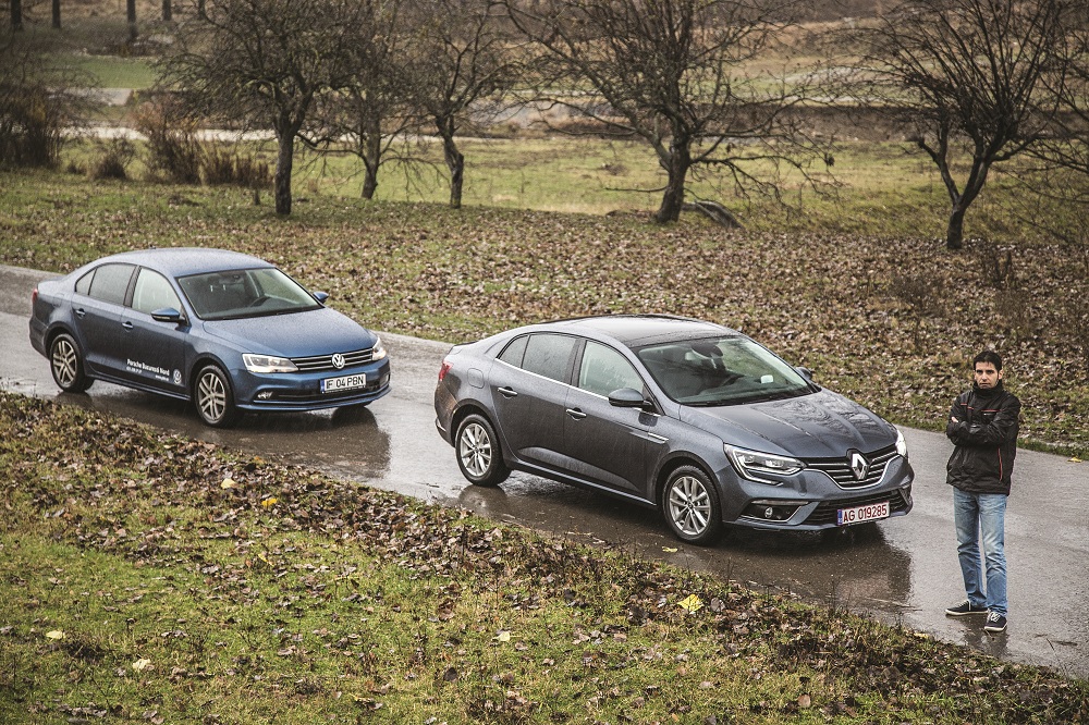Rar mi-a fost dat să compar două mașini atât de apropiate și totuși cu personalități atât de diferite… Eternul meci între Franța și Germania, între confort și sportivitate, între complex și simplu se rejoacă. Protagoniștii acestei runde sunt recent lansatul Renault Megane Sedan 1.5 dCi 110 CP și VW Jetta 2.0 TDI 110 CP. Să înceapă jocul! Foto: Bogdan Paraschiv