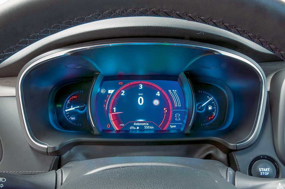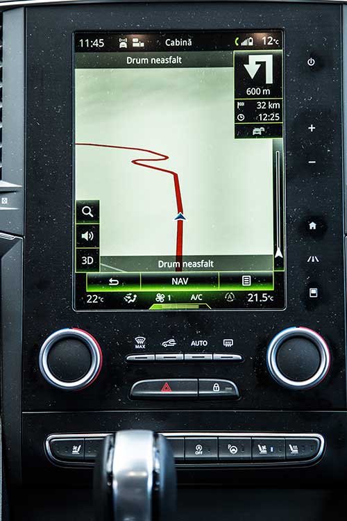 În contrast cu primul nivel de echipare, Life, dotat doar cu radio, respectiv a celui mediu Zen care vine cu un touchscreen orizontal de 7 inch, varianta de top Intens este înzestrată cu un ecran tactil de 8,7 inch, dispus în format portrait, fereastra de acces către sistemul de infotainment și navigație R-Link 2 (prezent și pe Megane sau Espace). Acesta oferă o operare intuitivă, navigarea fiind realizată pe verticală și orizontală, în stilul familiar utilizatorilor de tablete cu sistem de operare Android. Câteva comenzi esențiale, precum cele dedicate volumului radiolului, setărilor mașinii sau revenirii la meniul principal, sunt ancorate în partea dreaptă a display-ului, sub forma unor hot-keys inscripționate discret pe rama acestuia. Alternativ, sistemul R-Link 2 poate fi controlat cu ajutorul controller-ului rotativ situat pe tunelul median, care, după depășirea fazei inițiale de acomodare, distrage mult mai puțin atenția șoferului. Butonul dedicat Multi-Sense joacă, de asemenea, rolul unei scurtături către opțiunile de personalizare a modurilor de conducere, configurabile și prin intermediul ecranului tactil. Clare și bine configurate, hărțile de navigație 3D, furnizate de TomTom, completează tabloul high-tech.