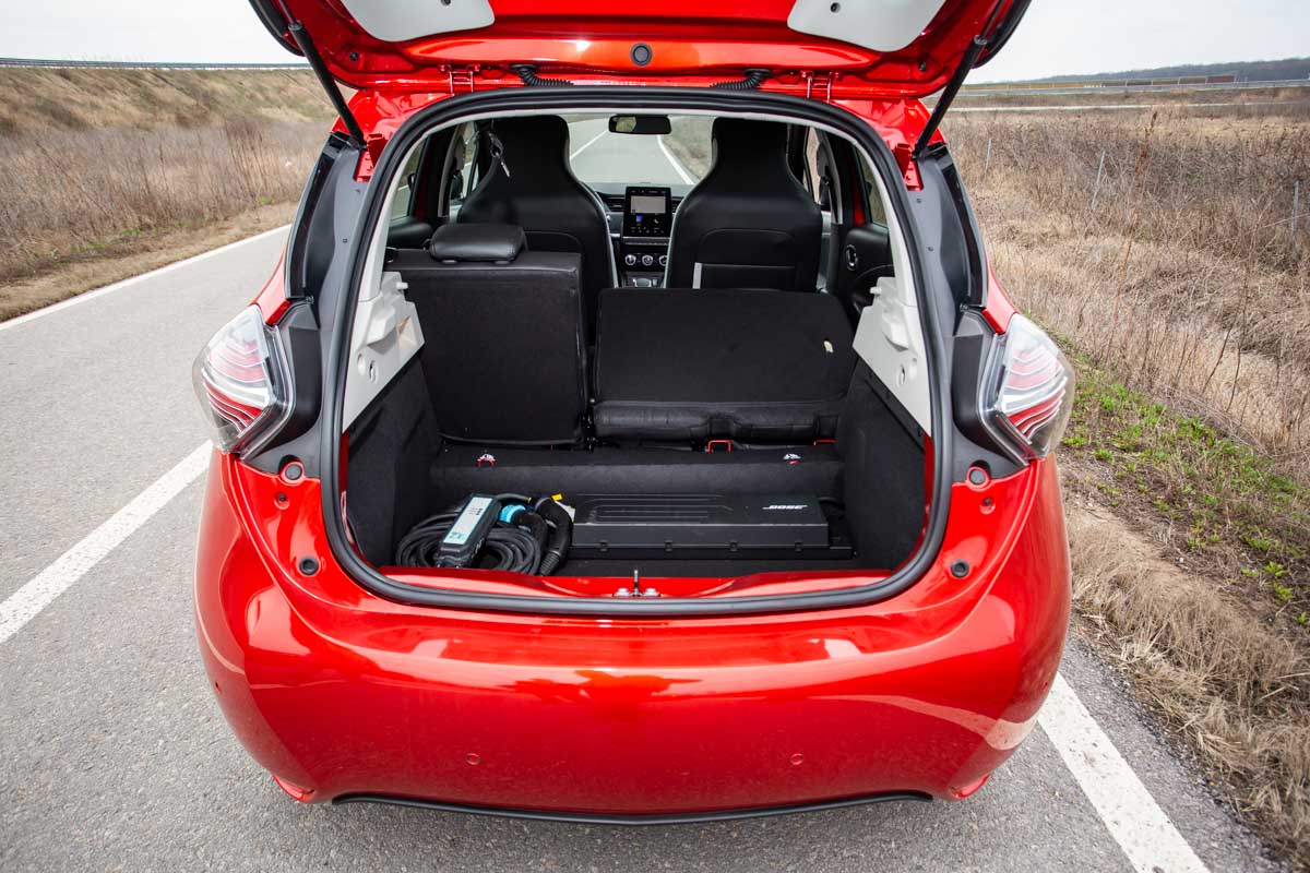 Portbagaj vă doriți? 338 de litri primiți, pentru că spațiul de bagaje al lui ZOE Z.E. 50 nu este limitat de baterii, așa că este mai mare decât ați crede. Doar că, la culcarea spătarului, se formează un prag destul de pronunțat.