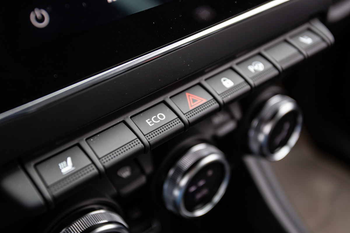 Dar îl iert pe francez, pentru că-mi aduce ofrandă pe consola floating schimbătorul e-shifter (standard), știindu-mă atras de interioarele SF. Plus blocul elegant de comandă al climatizării de pe Duster, plus claviatura aferentă deasupra lui. Doar că, și în versiunea de top, aceasta are două butoane false, fără funcții (nu mai există nici sistem stop/start, nici sistem panoramic de camere video, ca la Duster).