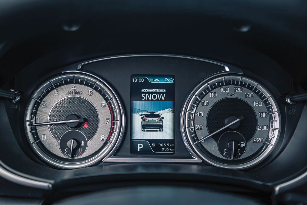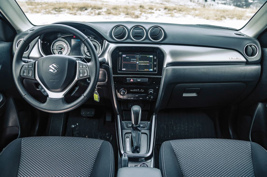 Totuși, se simte sportiv și trage fără efort de Vitara de la 1.500 rpm. Transmisia funcționează de cele mai multe ori fără reproș, dar aranjarea programelor cu modul manual la capătul cursei schimbătorului produce confuzie, iar schimbul manual al treptelor se face folosind exclusiv padelele din spatele volanului.