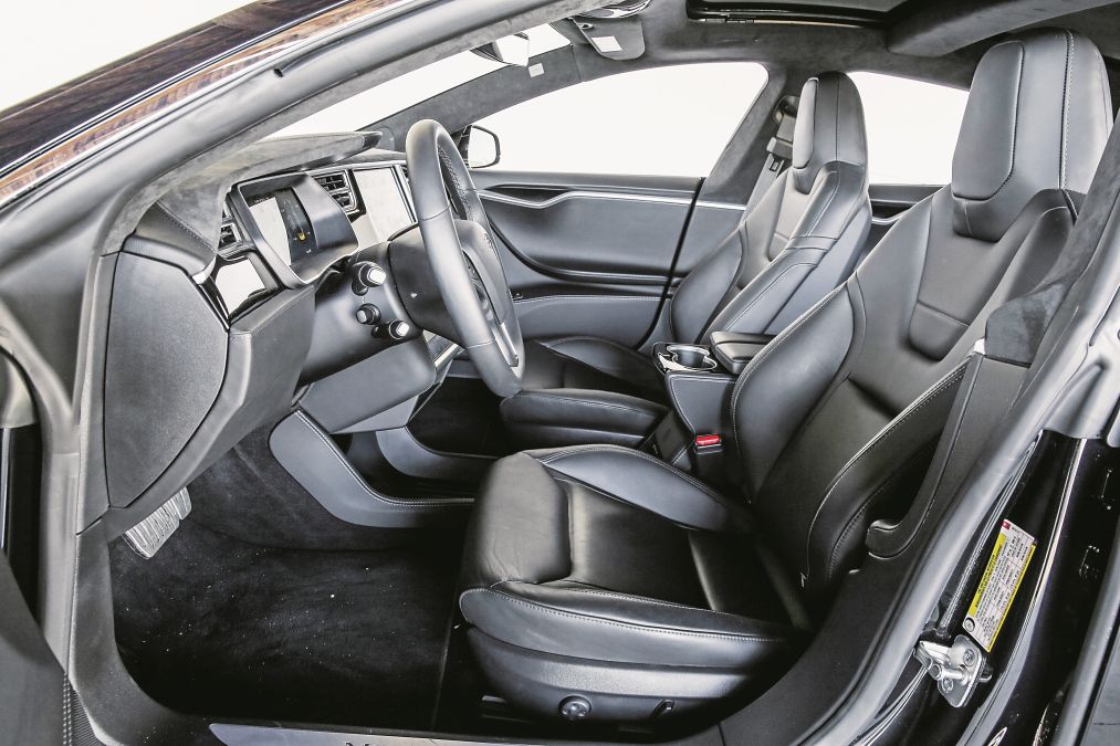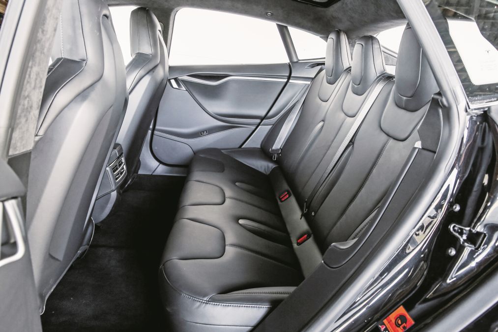 În aceeași notă, interiorul lui Tesla Model S este mai simplu decât am putea crede pentru o mașină a viitorului, iar pasagerii din spate nu sunt tratați nici pe departe la fel de regește ca într-o limuzină de lux ca S-Class. Spațiu au la dispoziție, dar nu au nici pe departe facilitățile din S-Class, iar din acest punct de vedere Tesla Model S este mai mult un driving machine decât un luxury saloon pentru cei ce iau loc pe bancheta din spate. Bancheta spate are un șezut scurt și tetierele sunt meschine fiind integrate în banchetă.