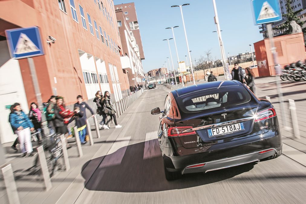 Fără a ne formaliza prea mult, trebuie să spunem că timpul de 3 secunde pentru accelerația de la 0 la 100 km/h anunțat oficial pentru versiunea cu pachetul Ludicrous este puțin cam optimist, deoarece măsurătorile Quattroruote au indicat o jumătate de secundă mai mult. Însă cei aproape 1.000 Nm sunt suficienți pentru a-ți smuci capul la accelerare. Nu e o figură de stil pentru că prin natura lor, motoarele electrice au cuplul disponibil în totalitate de la zero, iar accelerațiile sunt comparabile cu ale unor supercaruri ca Ferrari 488 GTB sau Porsche 911 turbo. După primii zeci de metri, senzația de accelerare fulminantă se domolește puțin poate și din cauza liniarității cu care lucrează motoarele electrice dar suntem încă în domeniul de înaltă performanță.