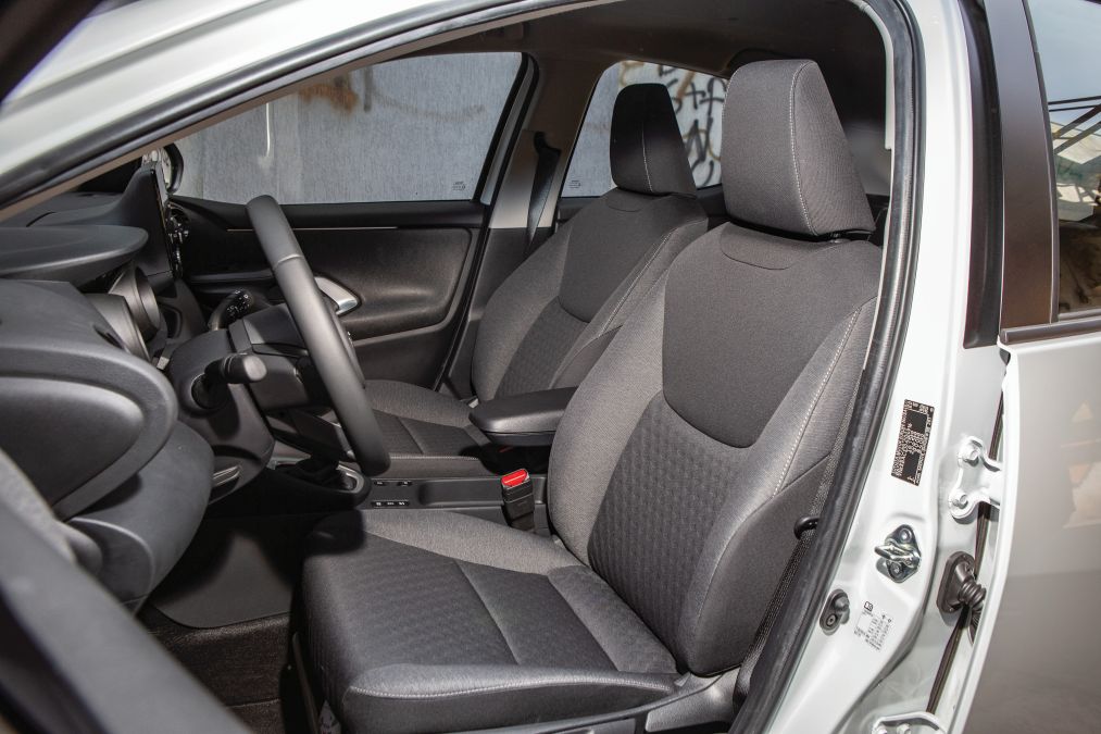 „Bubu-racer-ul“ își menține atitudinea și la interior, unde coborârea plafonului nu are repercusiuni semnificative asupra spațiului, fiindcă și scaunele stau mai jos cu 60 mm, deci, față de fosta generație, unde stăteai aproape ca într-un crossover, pe noul Yaris îl simți ca pe o extensie a corpului.