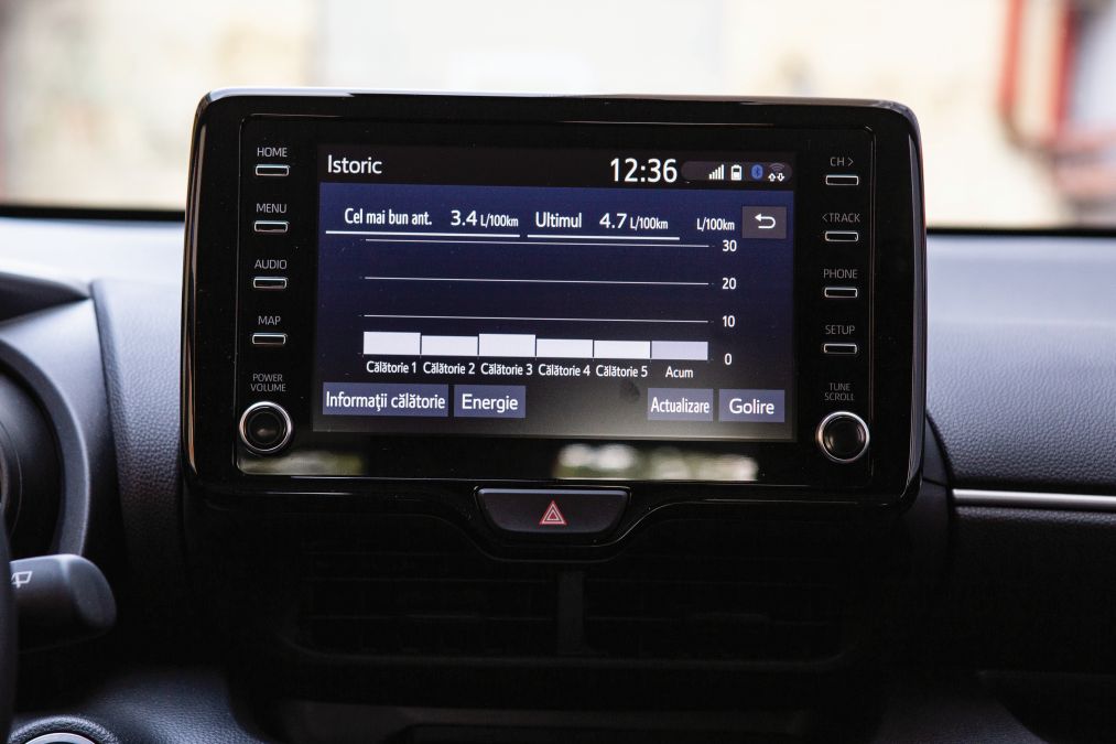 Consumul a scăzut. Am înregistrat constant valori mai mici decât la precedenta generație, cu o medie urbană uimitoare, mai mică de 4 l/100 km, adică cu 0,5 l/100 km sub cea a lui Yaris 3. Diferența s-a amplificat la ieșirea din localitate, unde noul Yaris a afișat o medie sub 4,3 l/100 km (–0,9 l/100 km), în timp ce pe autostradă coeficientul aerodinamic ameliorat (0,31 vs 0,34) a permis consumuri reale de aproximativ 6,5 l/100 km (–0,7 l/100 km).