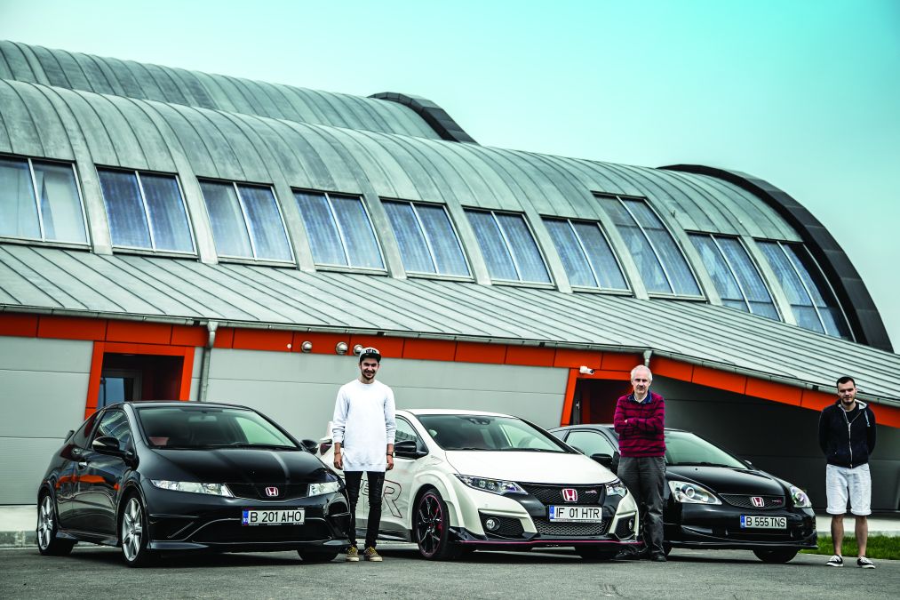 Ce nu ne-a plăcut este sunetul scos prin cele patru țevi de eșapament care arată totuși spectaculos. Motorul nu are niciun sunet ascuțit și nici unul baritonal ci mai degrabă o tonalitate banală, departe de emoția generată de sunetul fostului motor aspirat. Cu acest verdict au fost de acord și cei doi fani care au venit cu modelele Civic Type R ale precedentelor două generații. I-am întrebat de ce și-au cumpărat Honda Civic Type R și nu un alt hothatch și ce părere au despre noul model. Tudor apreciază motorul aspirat și fiabilitatea celei de-a treia generații, iar Vlad feelingul de kart la condus, vivacitatea și agilitatea al celei de-a doua generații. Și amândoi sunt de acord că noul model cu motor turbo este mai mult decât se așteptau. Vlad crede că motorul aspirat e mai fun pe circuit dar pe stradă e mai plăcut să mergi cu turbo.