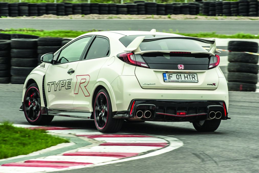 Cum merge noul Civic Type R cu noul motor turbo? Noua generație păstrează diferențialul elicoidal cu blocare limitată LSD pe față (Honda spune că acest diferențial reduce timpul pe un tur de circuit la Nurburgring cu 5 secunde față de unul tradițional), ridigitatea caroseriei este mai mare cu 17%, puntea față a fost modificată reducând efectul de torque steer cu 55%, iar puntea spate cu bară de torsiune a fost revizuită. Honda declară că puntea spate semirigidă este construită dintr-un mănunchi de țevi și nu dintr-un bloc solid, ceea ce i-a mărit rigiditatea cu 177%. În premieră la Honda a apărut suspensia adaptivă și butonul magic +R. Pe modul normal, dacă îi putem spune așa, Civic Type R se conduce foarte incisiv, fenomenul subvirator este redus și aderența punții față este foarte bună. Direcția mai grea este demnă de un hothatch, oferă un feedback foarte bun și este foarte precisă în jurul punctului mort.