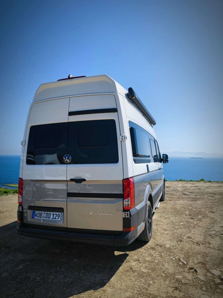 Are la bază un Volkswagen Crafter și este perfect optimizat din toate punctele de vedere, pentru că s-a născut autorulotă direct din uzina VW, nu a fost adaptat de o altă companie. Există patru locuri, cele din față putând fi rotite la 180° în câteva secunde, cu efort minim, iar cele din spate sunt grupate pe o băncuță, în stânga. Dacă le așeza față-n față, poți monta între ele și o măsuță pe care o găsești depozitată în portbagaj, sub pat, pentru a mânca la interior, dacă vremea de-afară este capricioasă, creând atmosfera perfectă pentru un nomad sociabil. Sau poți asambla măsuța afară, sub marchiza extensibilă, savurând în aer liber cafeluța aburindă.