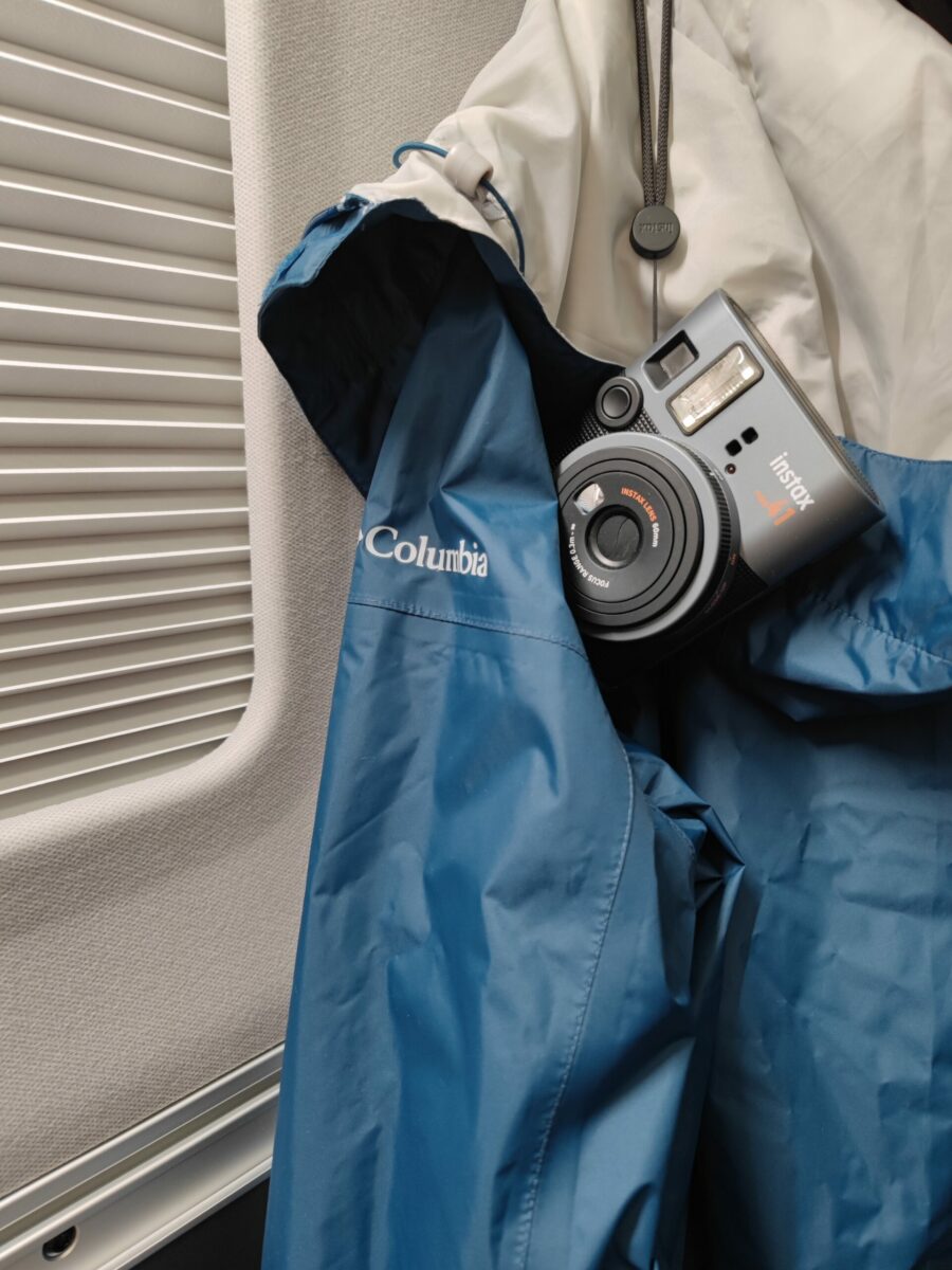 Față-n față cu acest ansamblu se află baia, impresionantă din toate punctele de vedere. Are vas de WC, chiuvetă pliabilă, a cărei baterie se extinde, transformându-se în pară de duș cu furtun, are rafturi pentru cosmetice, oglindă și agățătoare pentru prosoape. Practic, este o cabină de duș echipată precum o baie, încălzită (are la bază o gură de ventilație rotundă, prin care poate sufla aer cald) și cu o trapă în plafon, care se deschide pentru a elimina mirosul și aburul. Există două scurgeri montate în podea, dar nu parca mașina pe teren înclinat, așa cum am făcut-o eu, pentru că vei rămâne cu apă pe jos, în baie, după ce faci duș.