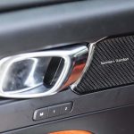 Deschid ușa și admir interiorul tineresc, sportiv, cu suprafețe portocalii și plafon negru, o combinație izbitoare, demnă de performanțele mașinii. Mă așez comod în scaunele cu tapițerie Nubuk textil/piele Nappa, cărora le pot regla inclusiv susținerea lombară (electric) și lungimea șezutului (manual) totul standard pe versiunea R-Design. Inspir pregnantul miros de piele fină, privind instrumentarul de bord digital configurabil cu diagonala de 12,3 inci (standard) și sistemul multimedia cu ecran tactil de 9 inci, în timp ce sistemul se sunet premium Harman/Kardon (750 euro) mă înconjoară cu tonuri clare, bine detaliate.