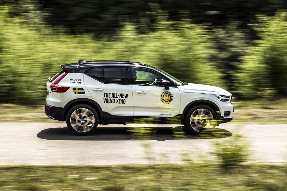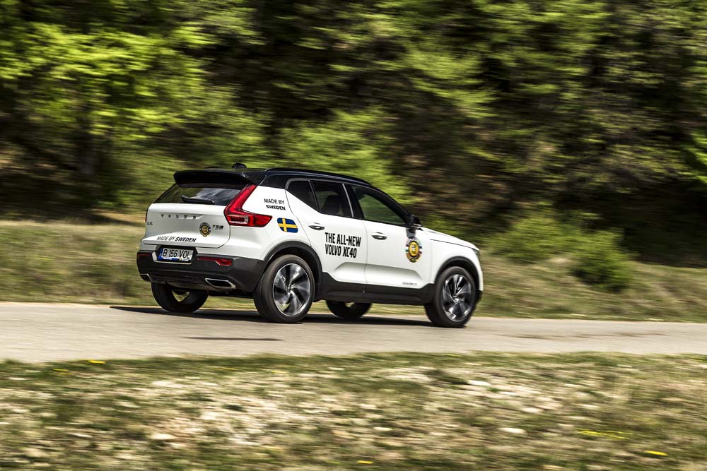 51 cm și o înălțime interioară de 94 cm, valori neatinse de alte SUV-uri compacte premium. Și nu, portbagajul nu a avut de suferit, ci oferă 460 litri, o valoare bună pentru zona premium a segmentului. Arătos, bine dotat, dar cât de performant? Am pornit testul cu versiunea Volvo XC40 T5 AT8 AWD R-Design la drum întins, unde transmisia automată cu 8 trepte m-a surprins cu un rulaj relaxat la viteză constantă: astfel, la 130 km/h, turometrul indică 2.100 rpm. O simplă apăsare a accelerației în modul Sport și cutia retrogradează instantaneu, asemenea uneia cu dublu ambreiaj, iar după o jumătate de secundă necesară amorsării turbinei, SUV-ul țâșnește cu forță înainte și se turează cu poftă până după 5.500 rpm.