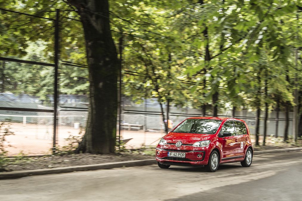 În afara orașului însă, am apreciat cele 3.000 rpm la 120 km/h în treapta a cincea dar și consumul de 4 l/100 km la o viteză medie de 75 km/h. Per ansamblu, călătoria în Up! s-a dovedit silențioasă, în pofida plasticelor tari din habitaclu și a celor trei cilindri ai motorului. Ce-i drept, noul motor TSI de 1 litru și 90 CP promite mai mult, cu ai săi 160 Nm, suficienți pentru a imprima un sprint 0-100 km/h în 10 secunde și o viteză maximă de 185 km/h.