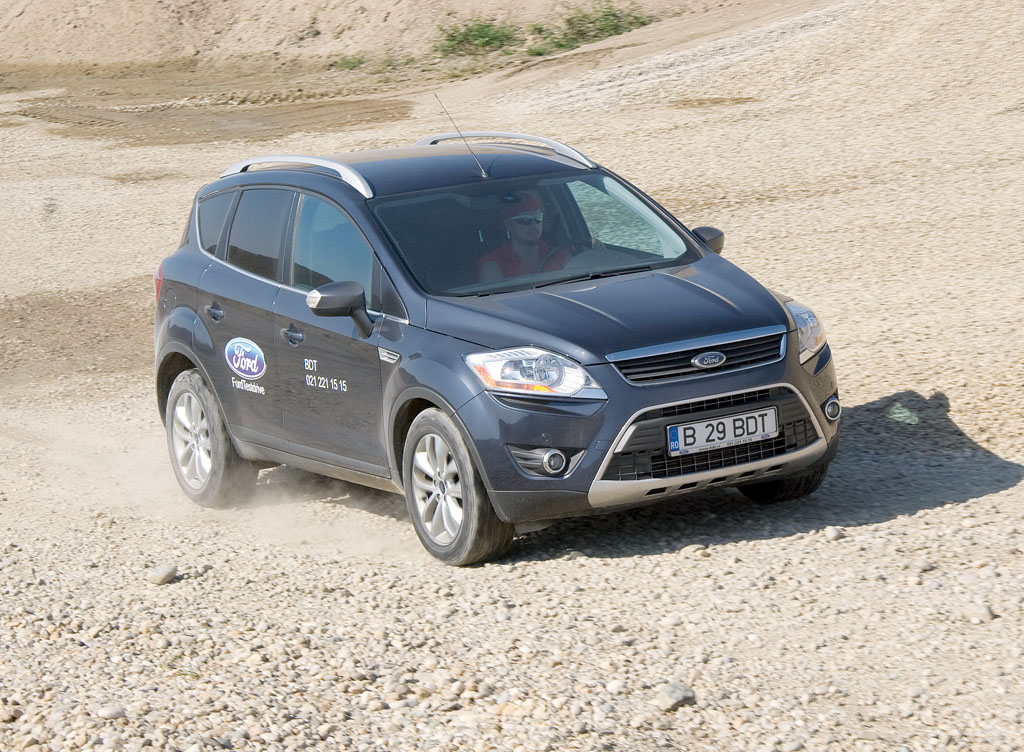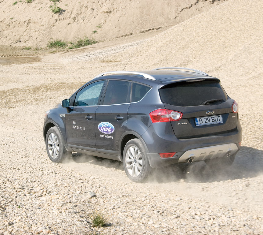 Am rămas cu impresia că singurul moment în care realizezi că ai condus un pseudo SUV este atunci când cobori și realizezi distanța la care te afli față de asfalt. În rest Kuga nu suferă de stigmatele obișnuite ale clasei (ruliu, senzație de greutate și direcție fadă) motiv pentru care proba asfaltului îi revine fără drept de apel. Dacă acum doi ani criticam confortul pe suprafețele denivelate, acum am beneficiat de un model cu jante ceva mai realiste via-a-vis de infrastructura internă (17“) care au rezolvat în mare această problemă.