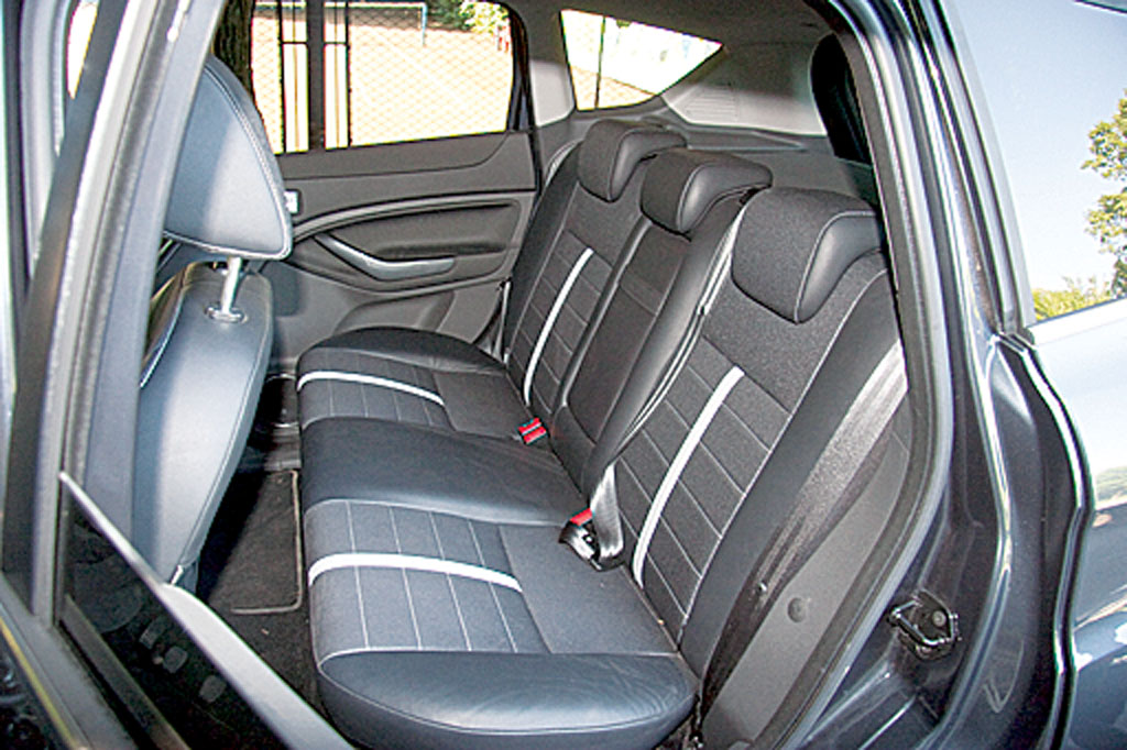 Versatilitatea este un alt capitol unde Kuga lasă să vadă concepția ceva mai veche, bancheta nu culisează, iar spătarul nu poate fi reglat. Ca o compensație bancheta se rabatează foarte ușor și formează o bază plată de încărcare pentru a elibera un volum maxim de încărcare de 1.405 l (410 l standard). Interesantă este și poziția la volan prin simplul fapt că îți oferă vizibilitate fără să îți lase impresia că te-ai așezat pe mașină. Prin urmare, cei care au condus până recent o compactă se vor simți ca la ei acasă la bordul lui Kuga.