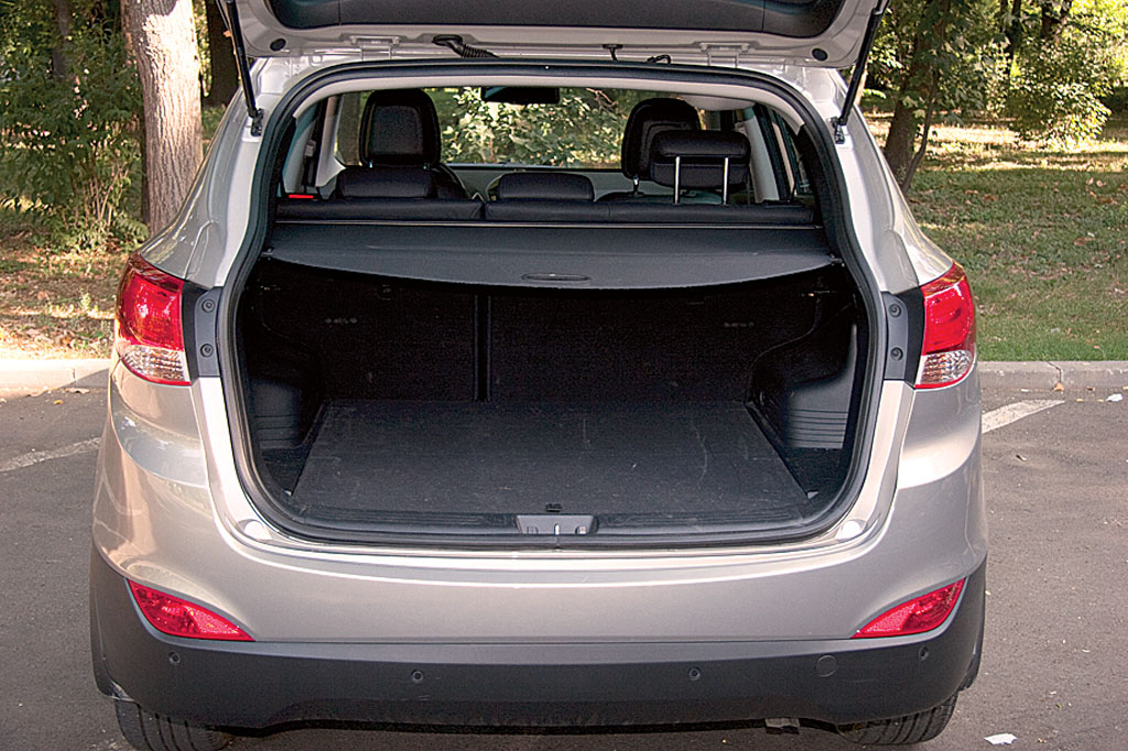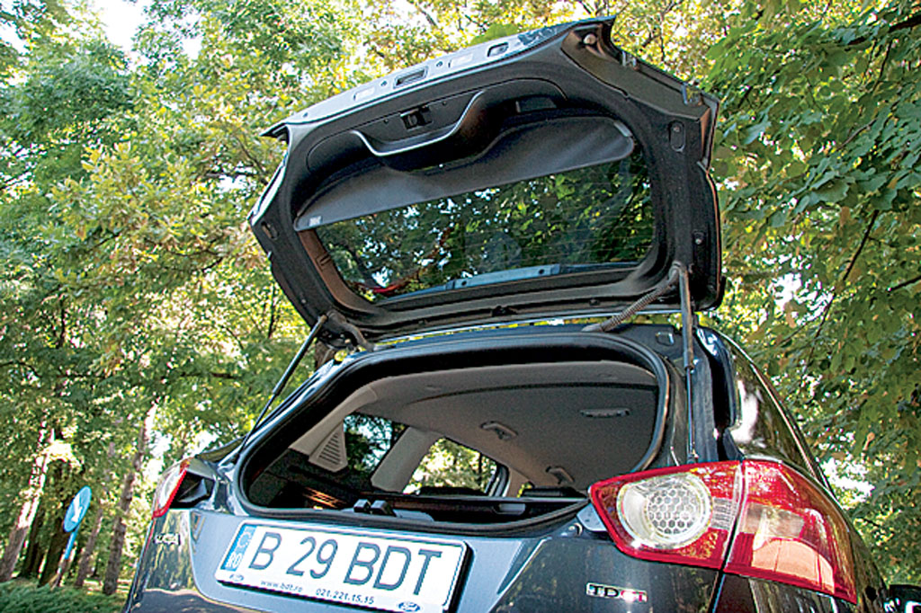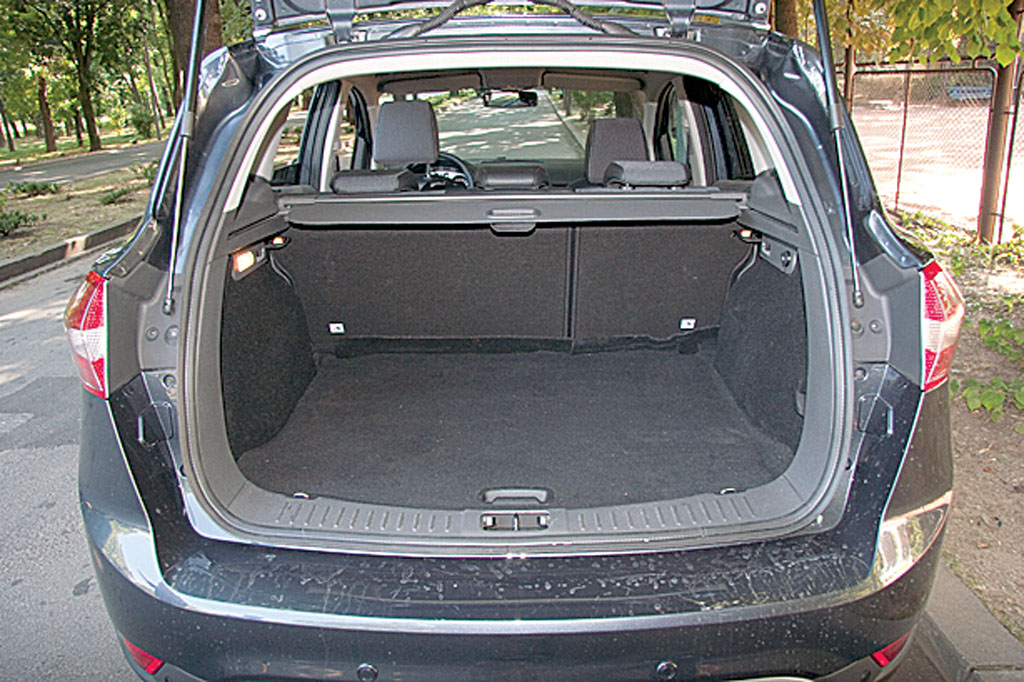 Nici portbagajului de 590 de litri nu i se poate reproșa nimic, ba mai mult, comparativ cu valorile celui de pe Kuga, avem de-a face cu un spațiu cu aproape 50% mai generos. Accentul pus pe design a făcut și „victime“ însă. Vizibilitatea către înapoi poate ridica probleme, mai ales în momentul în care efectuezi manevre de parcare. Pentru a îndulci acest neajuns, Hyundai oferă opțional sistem de asistare la parcare cu cameră video, pe care îl recomand fără nici o reținere. Costul său se poate amortiza mai repede decât v-ați închipui, prin evitarea unor vizite neplăcute la tinichigerie.