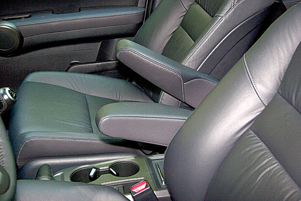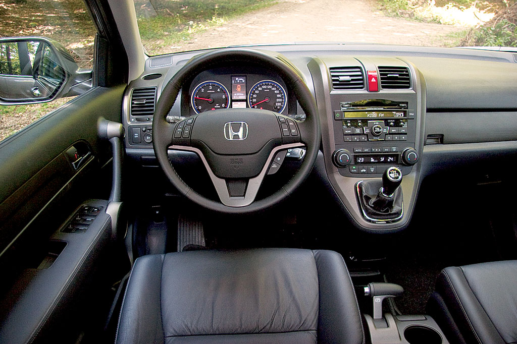 Planşa de bord este simplistă şi intuitivă din punct de vedere al plasării comenzilor, cu un grad mai mic de SF decât posedă celelalte modele din gama Honda. Materialele aflate în interiorul lui CR-V sunt foarte bune calitativ, iar folosirea lor îşi are originea în ambiţia niponilor de a duce marca Honda în zona mărcilor premium. La fel se poate spune şi despre calitatea finisajelor şi îmbinărilor, realizate fără cusur. Vizibilitatea este în general bună, penalizată doar de ultimul rând de geamuri laterale din zona spatelui, reduse ca dimensiuni. Portbagajul are un volum satisfăcător și se poate extinde în funcție de necesități prin modularitatea bună oferită de bancheta spate. Pentru ca obiectele transportate să-şi găsească mai uşor locul, portbagajul a fost compartimentat cu o poliţă pe care pot fi aşezate obiectele mai uşoare şi care necesită să fie la îndemână. La drum, vibraţiile şi zgomotele de rulare sunt minime.