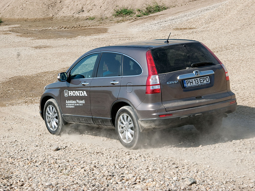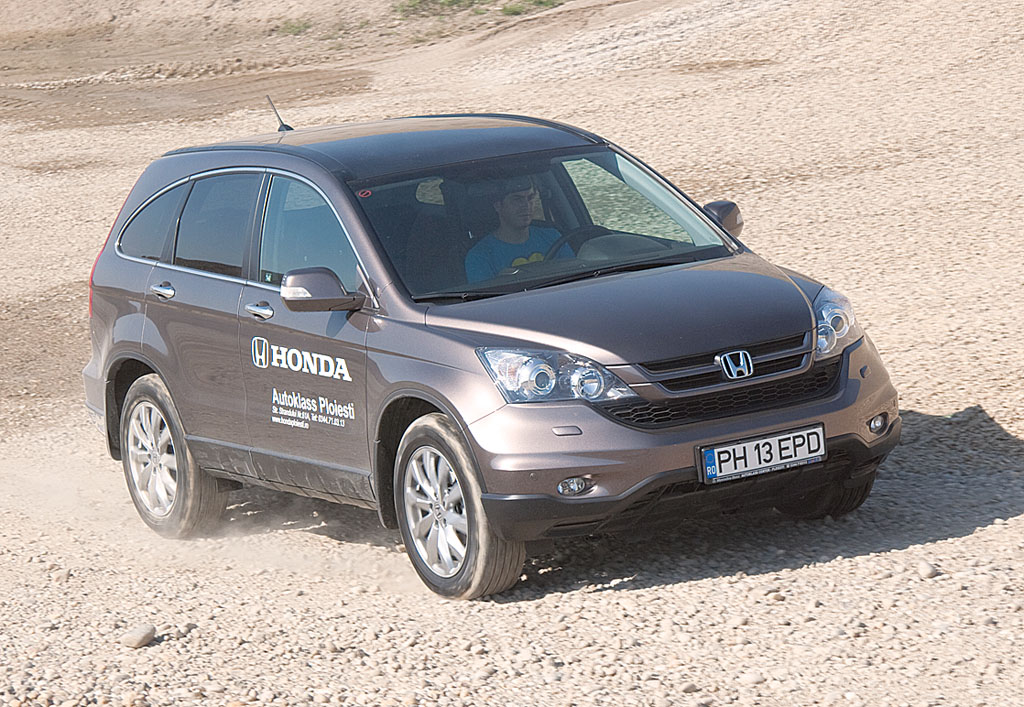 Cât priveşte aventurile în afara şoselei, acestea trebuie făcute cu mare atenţie. Sistemul de tracţiune acționează foarte prompt în raport cu condiţiile de drum, însă nu a fost setat pro-off-road. Nu există reductor şi nici vreun buton care să permită celui de la volan intervenţii asupra setărilor sistemului de tracţiune. Singura comandă care poate ajuta în teren este posibilitatea decuplării sistemului de stabilitate, dar pe care o au implicit şi celelalte concurente din test şi care este mai mult un feature de siguranţă. Garda la sol este modestă și contribuie la penalizarea lui CR-V în raport cu celelalte maşini din test.
