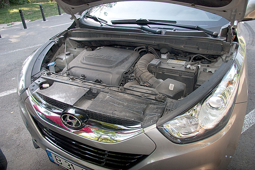 Așa cum îi șade bine unui SUV, sub capotă tronează un propulsor diesel de ultimă generație. Cei 184 CP îl transformă în cel mai potent model din test, iar asta se simte și în exploatare. Fără a avea rafinamentul dCi-ului de pe Qashqai, motorizarea lui ix35 se achită cu brio de sarcinile pe care i le trasezi. Valoarea mare a cuplului motor (383 Nm) și setările transmisiei automate îl transformă atât într-un model docil când este cazul, în mediul urban, dar și într-un devorator de kilometri la drum întins. Prețul versatilității este plătit la pompă, ix35 nefiind chiar cel mai economic model din test. Funcția Eco disponibilă este sesizabilă în exploatare, dar nu este vorba de o micșorare semnificativă a consumului de combustibil.