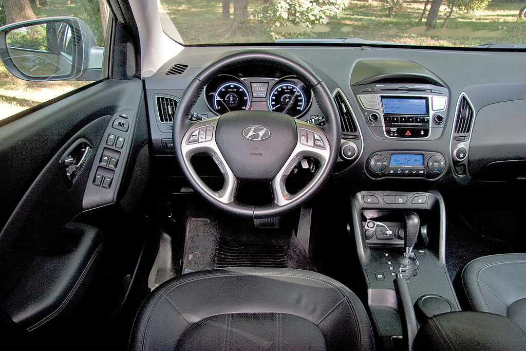 Aceeași tendință a fost urmată și la interior, unde aspectul nu a fost trecut cu vederea. Din momentul în care te urci în ix35 e lesne de reperat atenția acordată conceperii habitaclului și finisajele atente și îngrijite. Unele materiale însă, trădează faptul că vorbim totuși de moștenirea unei mărci de buget, dar asta doar în momentul în care vrei cu tot dinadinsul să analizezi centimetru cu centimetru întregul ansamblu. Spațiul oferit este foarte bine distribuit, atât pentru pasagerii din față, cât și pentru cei de pe banchetă, alt capitol la care Hyundai o ia în fața celorlalți.