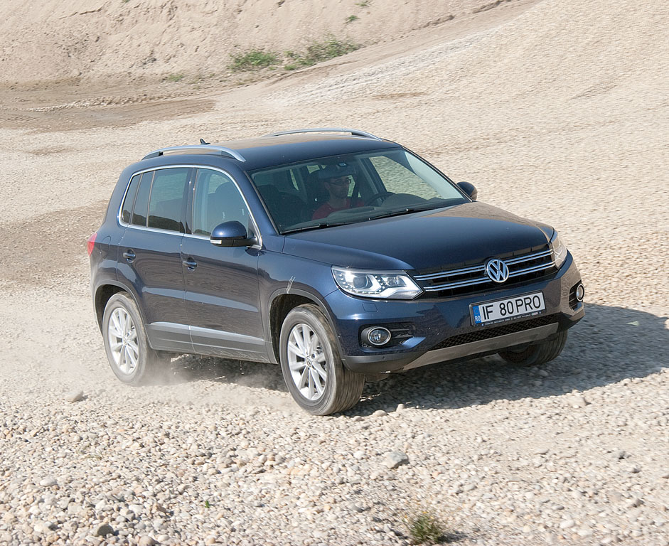 Tiguan este în schimb mai docil pe drumurile patriei şi încasează denivelările cu mai mult stoicism, iar sistemul 4Motion, revizuit, face călătoriile mai sigure. Pe viraje se comportă ca un model din clasa compactă, mişcările de ruliu şi tangaj fiind printre cele mai mici din segment. La drum intins este ajutat şi de transmisia automată cu 7 trepte şi dublu ambreiaj care, în anumite momente, are tendinţa de a ţine motorul subturat pentru o mai bună economie de carburant.