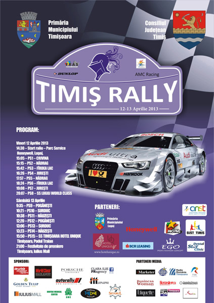 Timiş Rally este a doua bornă dintre cele patru care preced Raliul Sibiului, etapă din calendarul ERC pe 2013, de aceea fiecare dintre aceste repere trebuie să marcheze o creştere a potenţialului fiecărui echipaj ce aspiră la o clasare cât mai bună pe malurile Cibinului. În plus, Mihai Leu, organizatorul acestei etape și al celei de la Arad a declarat că speră să includă în calendarul ERC cel puțin unul dintre aceste raliuri din vestul țării, care s-au bucurat în fiecare sezon de o creștere a numărului de participanți străini dar și a publicului care asistă pe probele speciale. Credit foto: Mihaela și Sorin Pop (RallyZoom.ro)