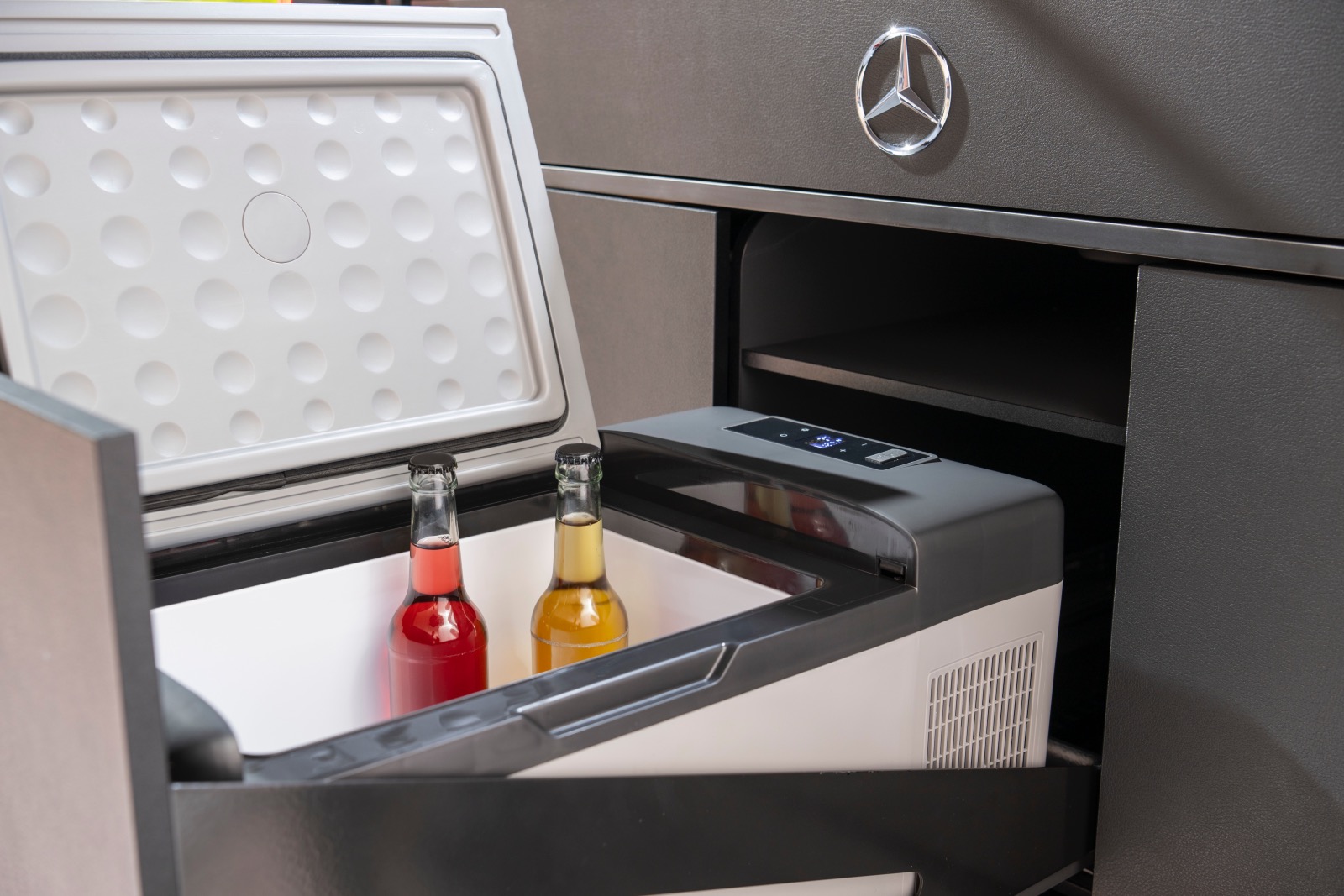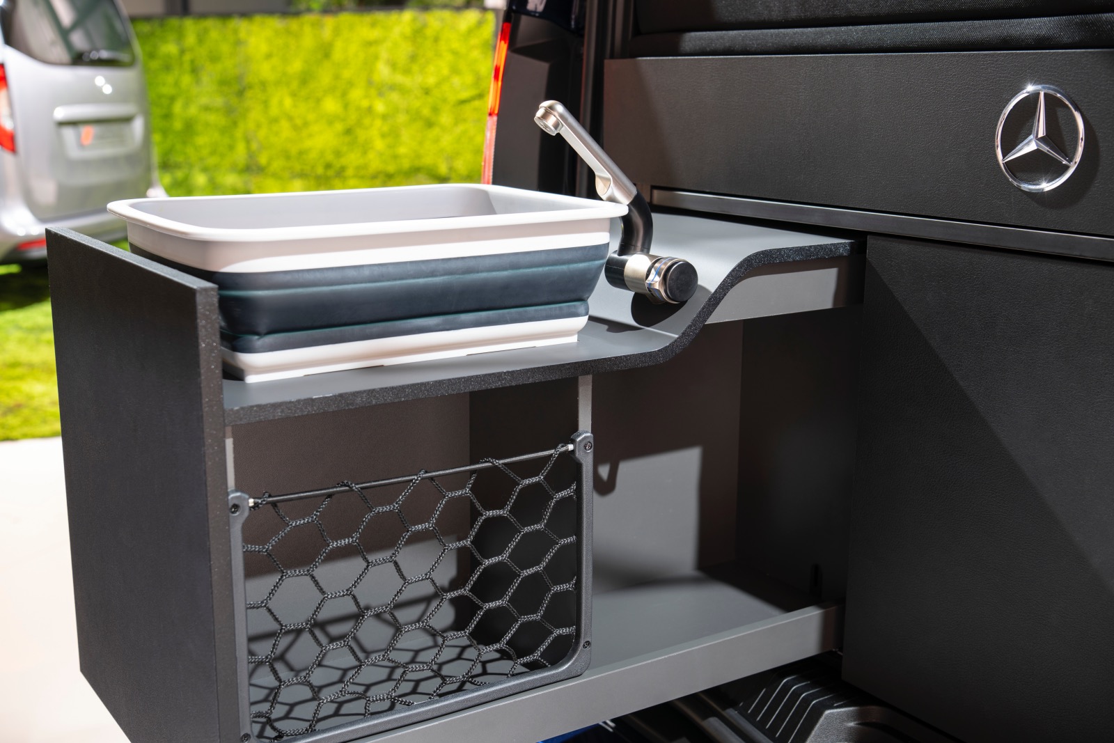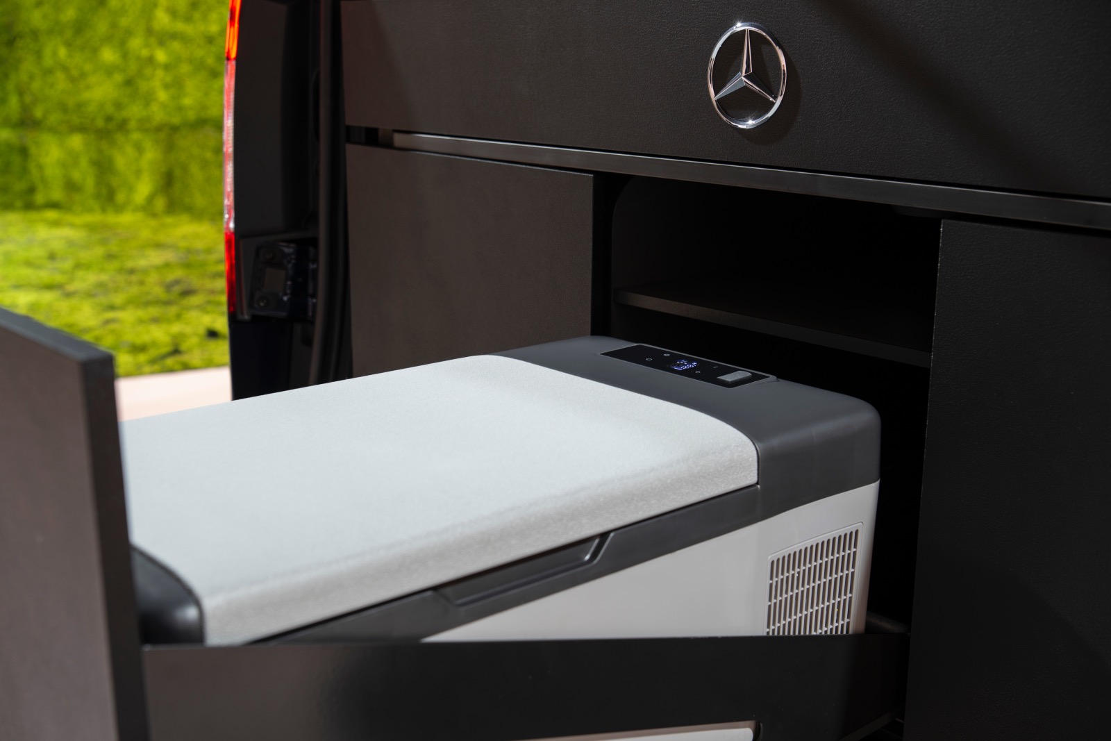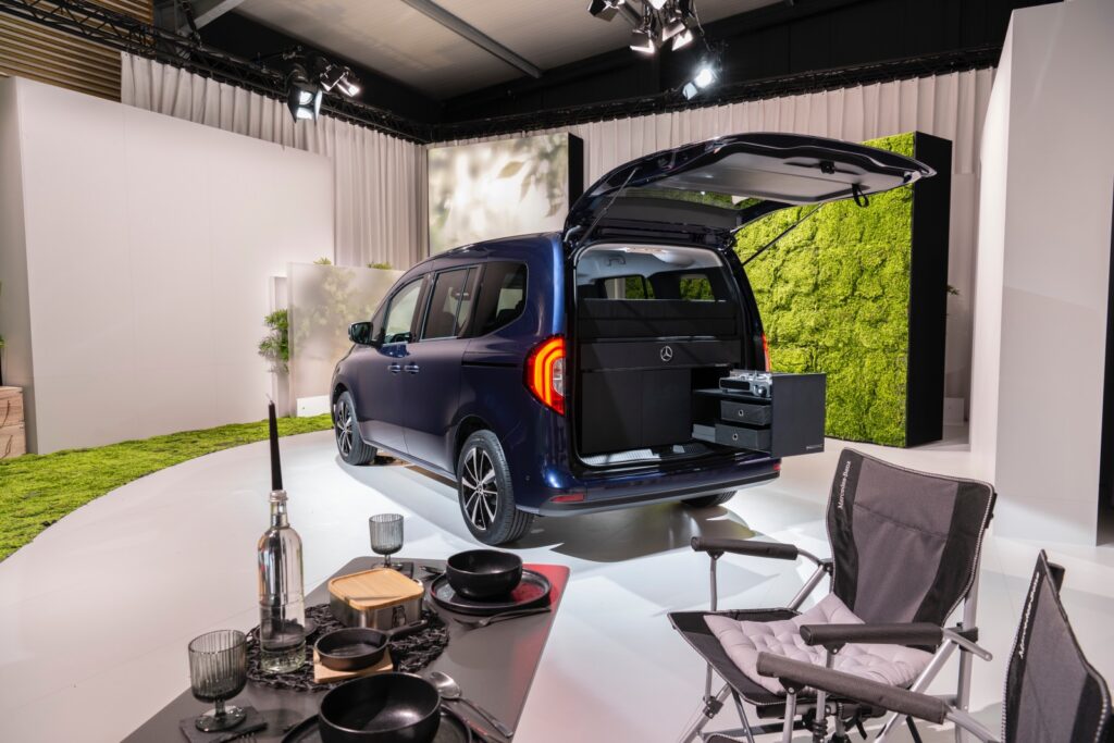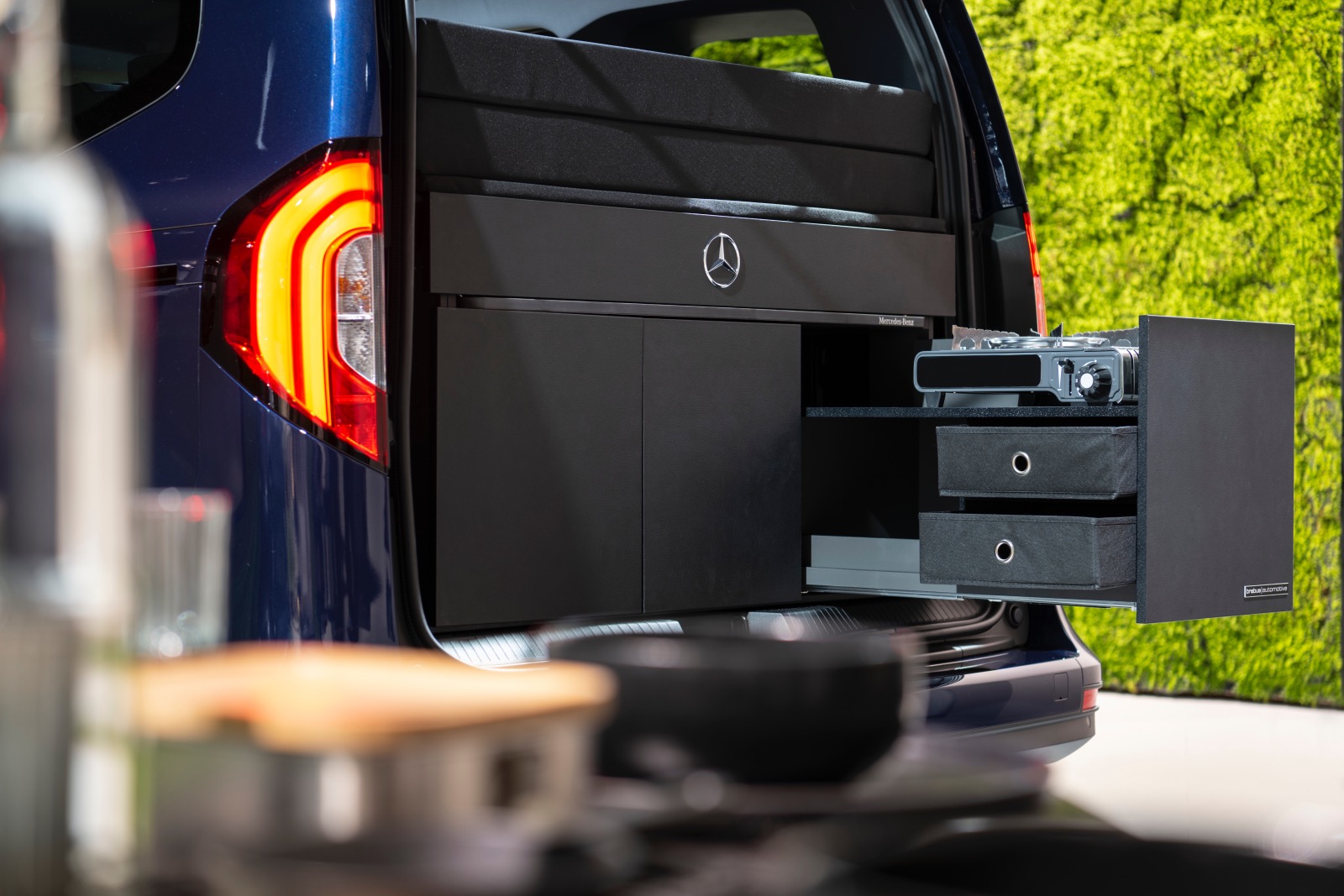 Mai interesant, Mercedes a dezvoltat și un modul Marco Polo ce poate fi montat pe versiunea scurtă a oricărui model EQT. Ideal pentru cei care vor să își folosească automobil doar ocazional pentru călătorii în natură, acest modul se montează în portbagaj. Acesta are nevoie de o fixare simplă în patru șuruburi și poate fi instalat în doar câteva minute.