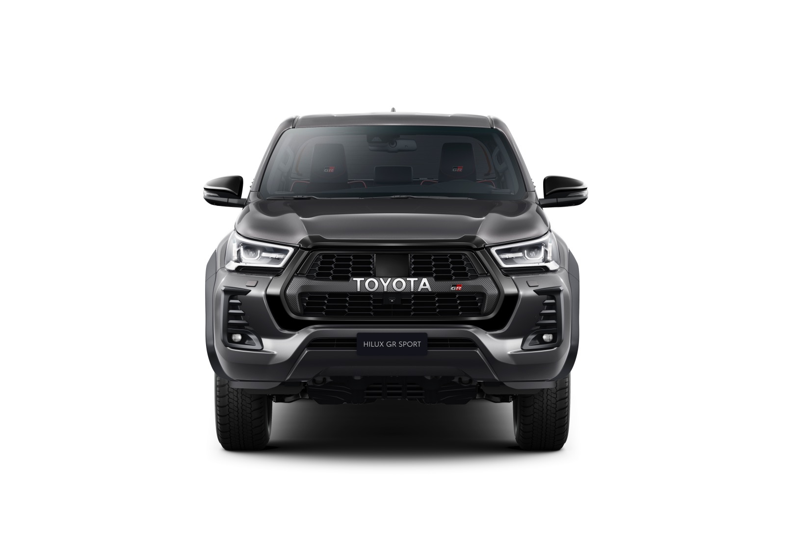 Din vara acestui an, Hilux va fi disponibil și în versiune GR Sport. Aceasta vine cu o serie de elemente specificia ca de exemplu caladrul negru ce integrează denumirea Toyota și sigla GR Sport, jante specificie de 17 inch și faruri LED.