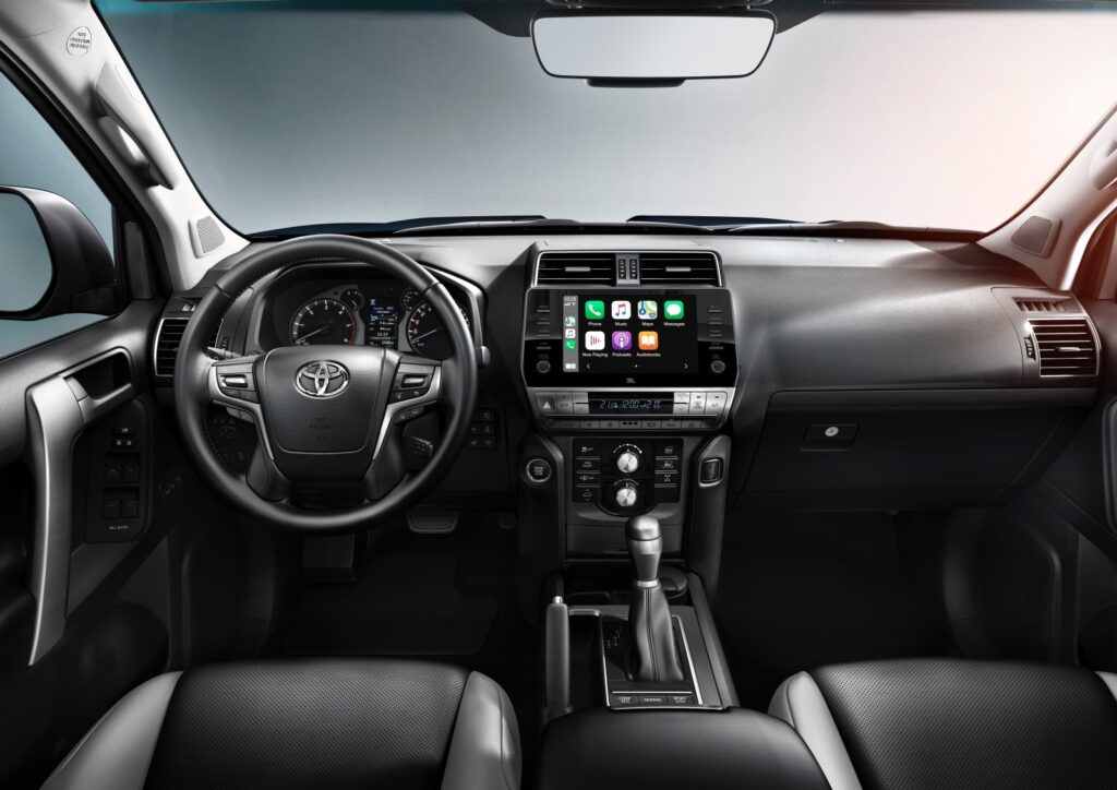 La interior tapițerie de piele folosită pentru scaune poate fi configurată în două combinații de culori: negru/gri sau negru/maro. Ediția specială Land Cruiser Matt Black poate fi configurată pe echipările de top ale modelului.