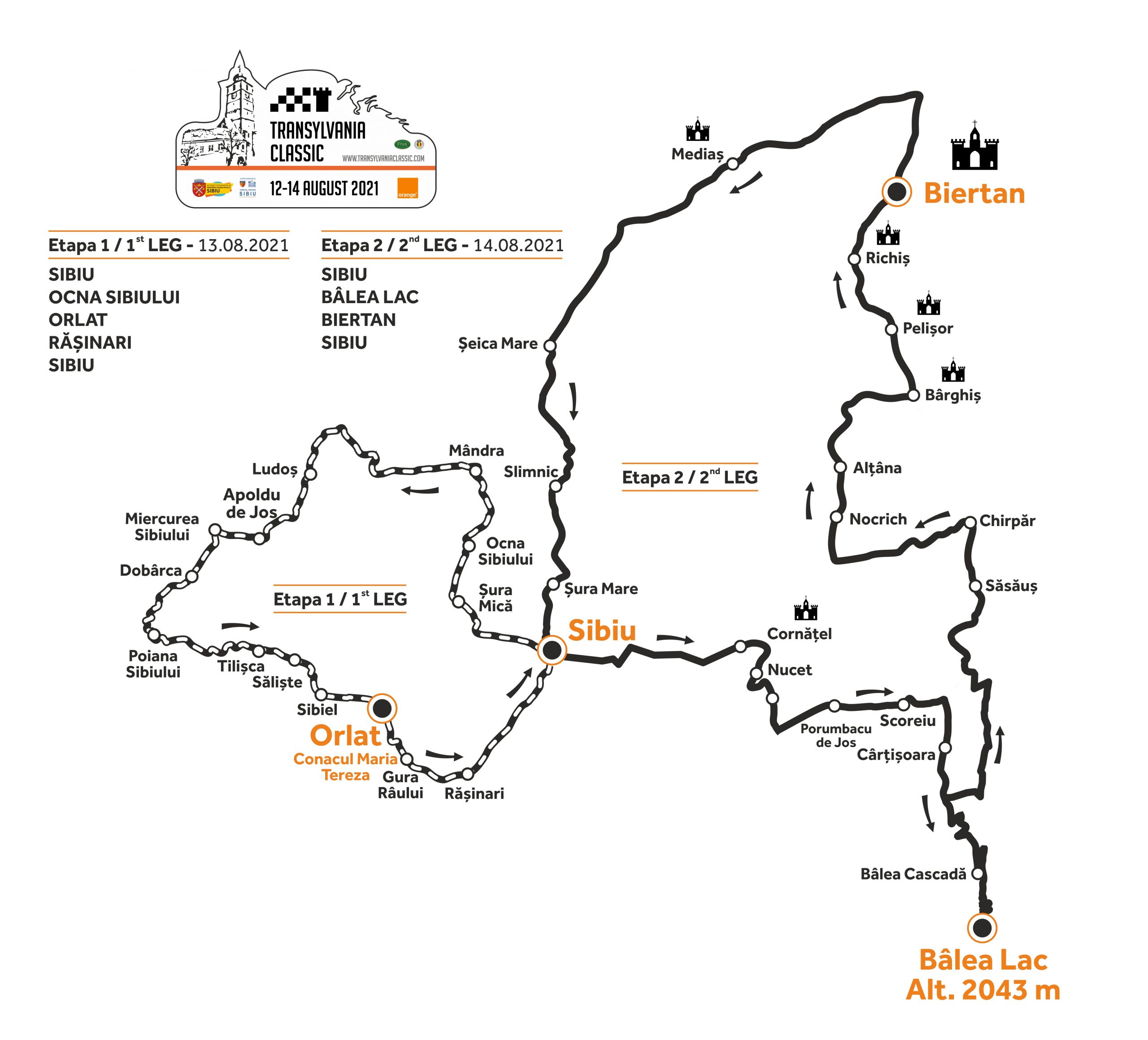 Startul festiv al competiției este programat joi, 12 august, de la ora 19:00, în Piața Mică din Sibiu, echipajele urmând să facă un tur demonstrativ pe străzile din centrul orașului. Vineri, 13 august, startul se va da la ora 12:00, iar echipajele înscrise în competiția de regularitate vor descoperi Mărginimea Sibiului și vor trece prin Șura Mică, Ocna Sibiului, Mândra, Ludoș, Apoldu de Jos, Miercurea Sibiului, Dobârca, Poiana Sibiului, Tilișca, Săliște, Sibiel, Orlat, Gura Râului, Rășinari pentru a ajunge apoi din nou în Piața Mică din Sibiu.