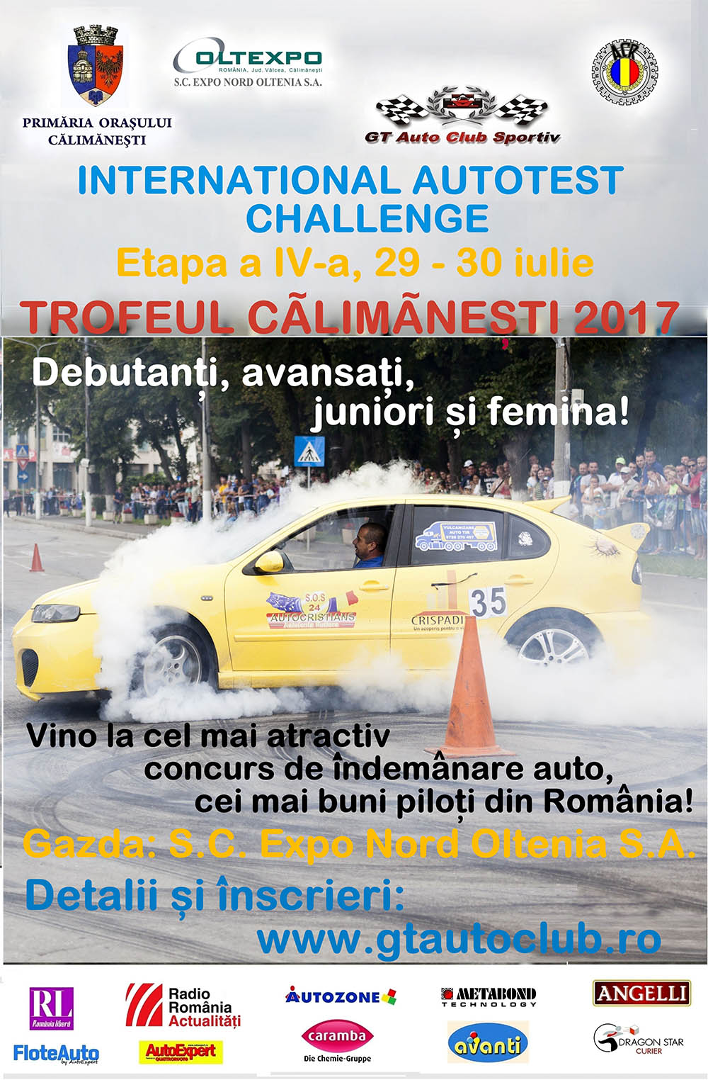 Aflat la cea de-a șaptea ediție și pentru prima dată în Călimănești, GT Auto Club Sportiv, vă invită la cel mai pasionant campionat de îndemânare auto, INTERNATIONAL AUTOTEST CHALLENGE, TROFEUL CĂLIMĂNEȘTI 2017!