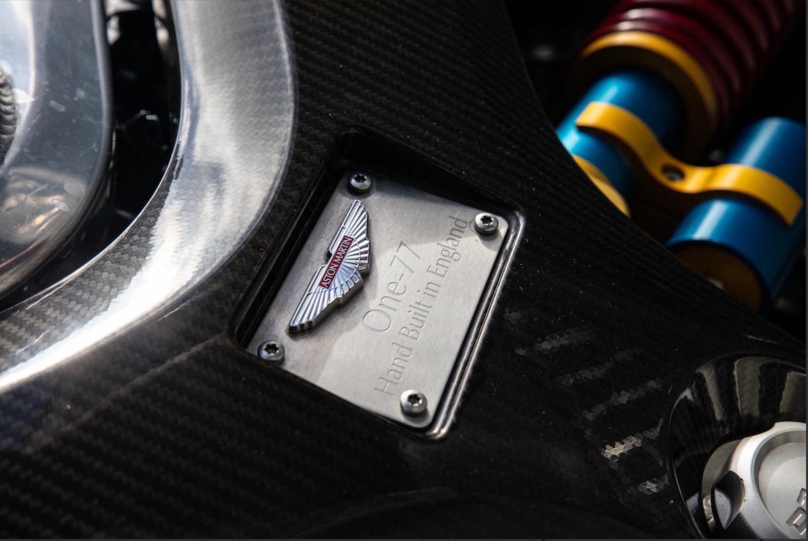 Supercarul a fost comandat de nou direct la uzina Aston Martin, fiind numărul 28 în seria de 77 exemplare ale modelului One-77. A fost vopsit în nuanța Morning Frost White, iar interiorul este finisat cu piele în nuanța Kestrel Tan.