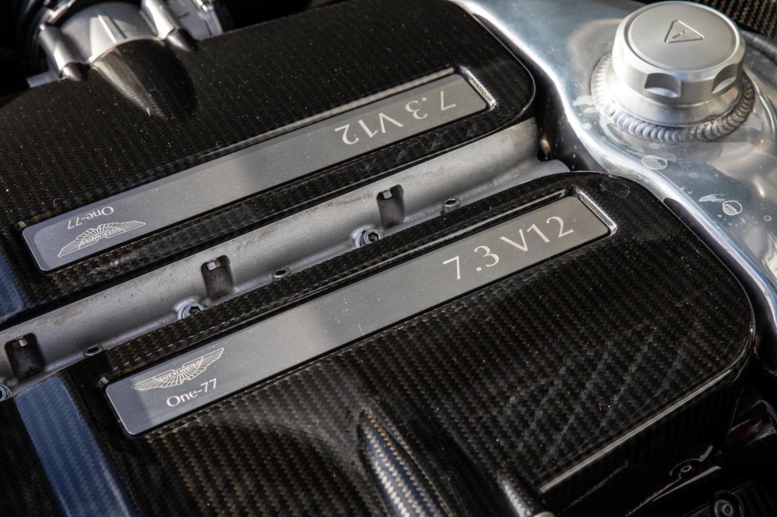 Aston Martin One-77 folosește motorul aspirat V12 de 7.3 litri ce livrează o putere maximă de 760 CP și un cuplu de 750 Nm. Motorul a fost dezvoltat împreună cu Cosworth și permite modelului să depășească o viteză maximă de 350 km/oră, iar accelerația de la 0 la 100 km/oră se face în 3.5 secunde.